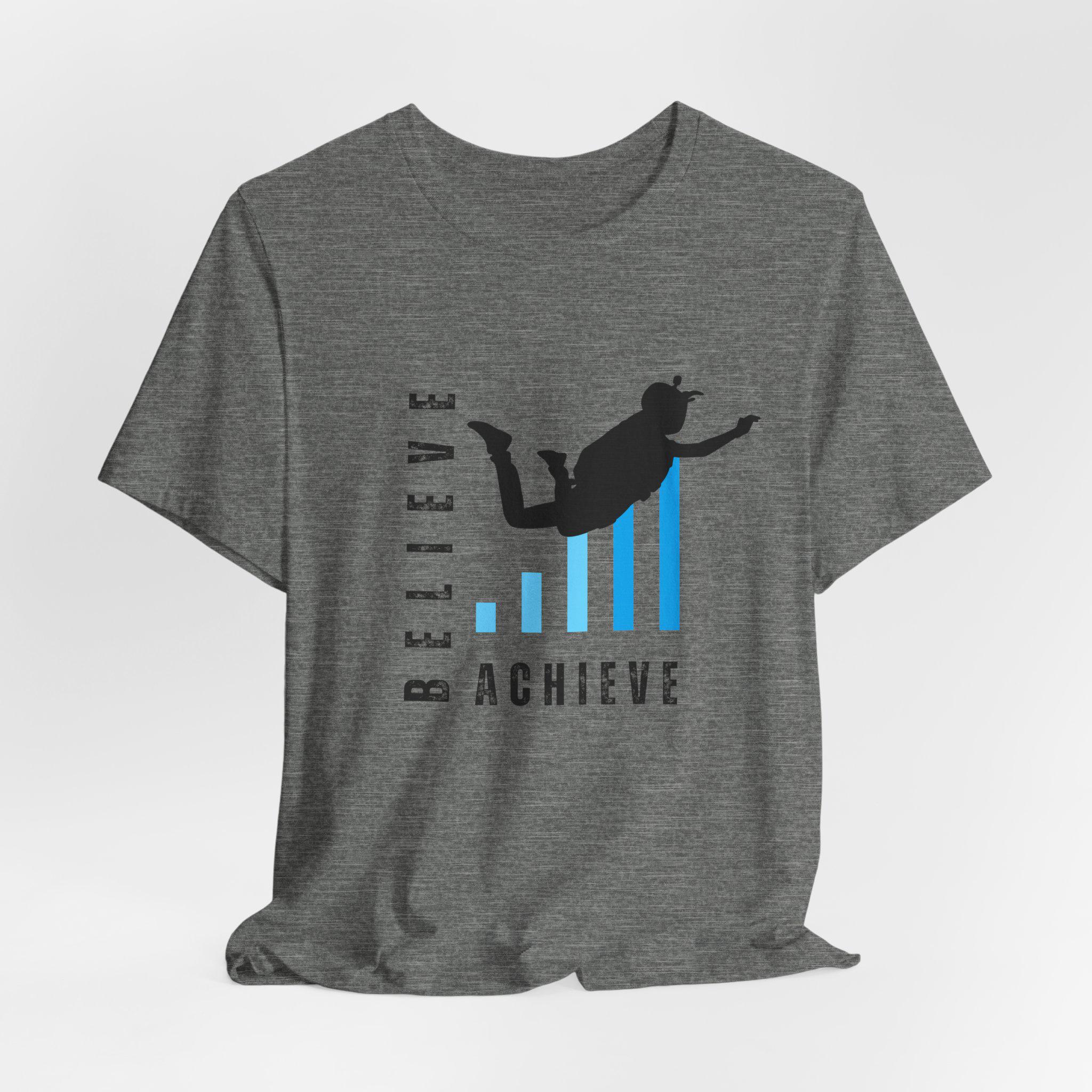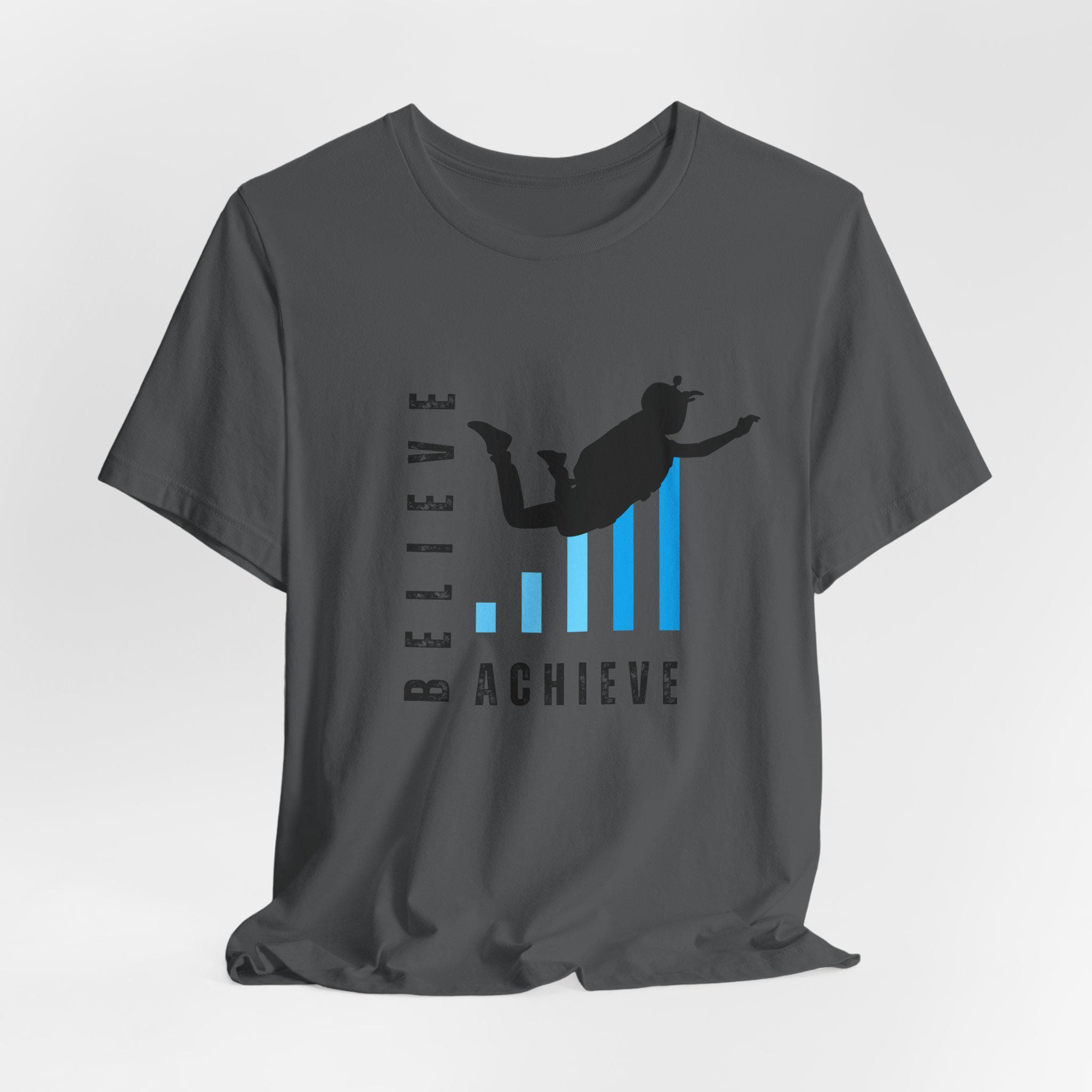 Embrace comfort and style with this versatile Unisex Jersey Short Sleeve Tee. Ideal for PT or jump events, its lightweight and breathable fabric makes it perfect for warm days and layering. This tee radiates a positive vibe with an inspiring design that encourage self-belief and achievement, making it a fantastic gift for friends or family who appreciate affirmations and motivation. Perfect for birthdays, graduation celebrations, or simply to uplift someone's day, this shirt is relevant for anyone looking to express their ambitions. Whether you’re lounging at home, in a plane, or out on the town, this tee fits seamlessly into any lifestyle.