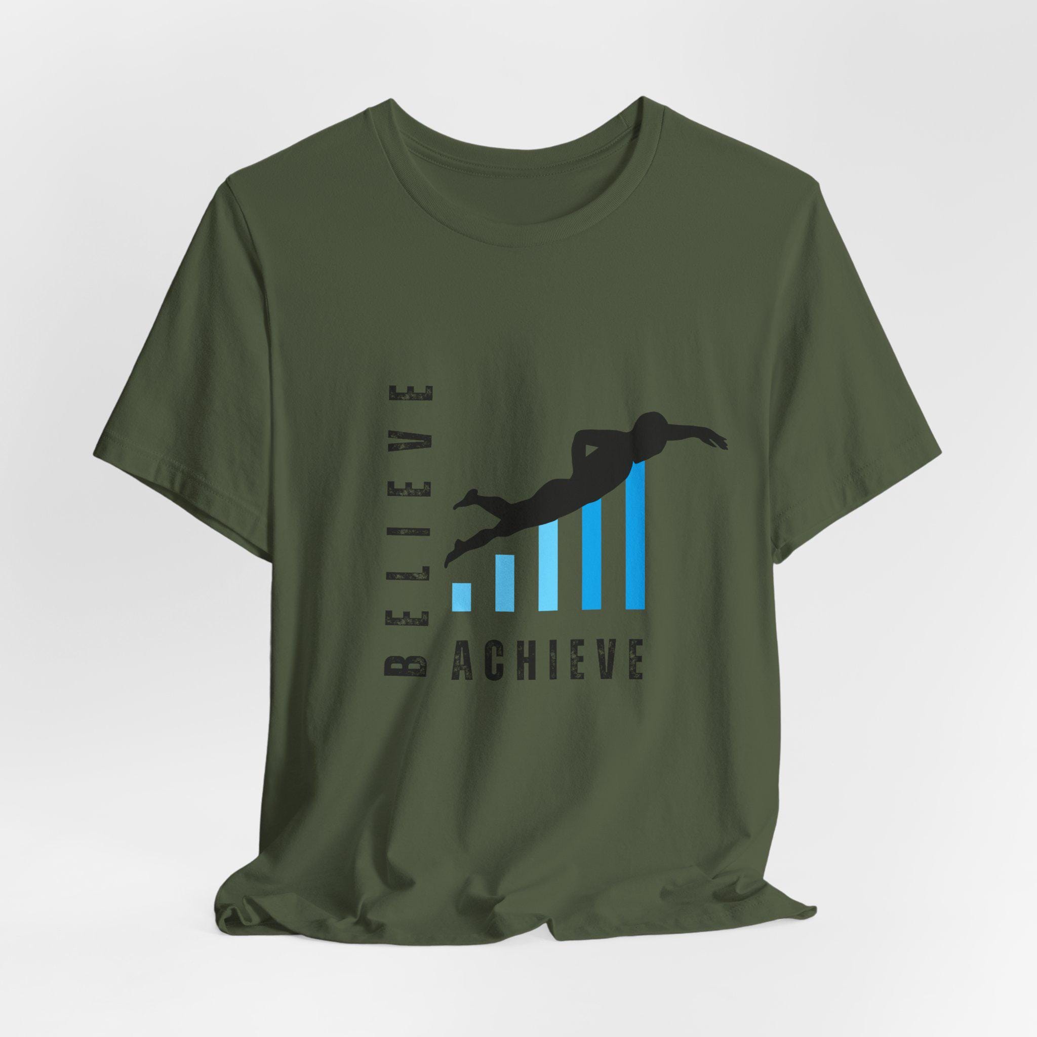 Introducing the ultimate Unisex Jersey Short Sleeve Tee, designed for comfort and versatility. This stylish tee brings a sense of motivation with its inspiring design, perfect for those who aspire to achieve their dreams. It’s ideal for casual outings, heading to the pool, or after practice. Whether you’re celebrating a win, participating in a team event, or just enjoying a relaxed day at home, this tee enhances your wardrobe with ease. Designed for swim enthusiasts, team swimmers, active duty, veterans, and anyone seeking daily inspiration, it encapsulates a fresh, uplifting vibe that's perfect for any occasion.
