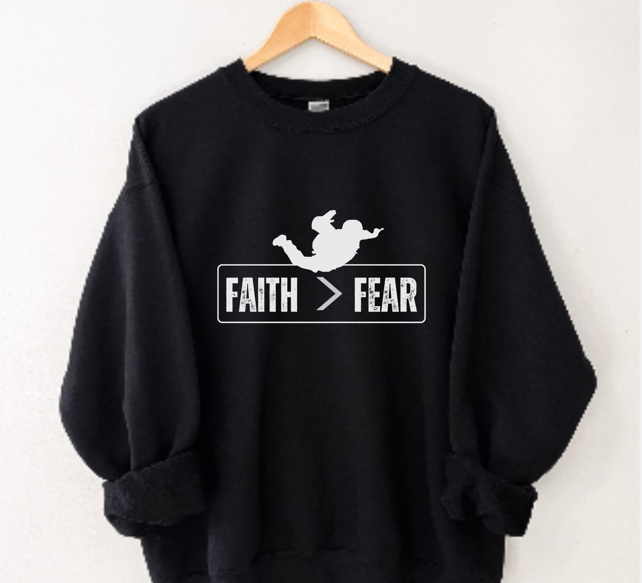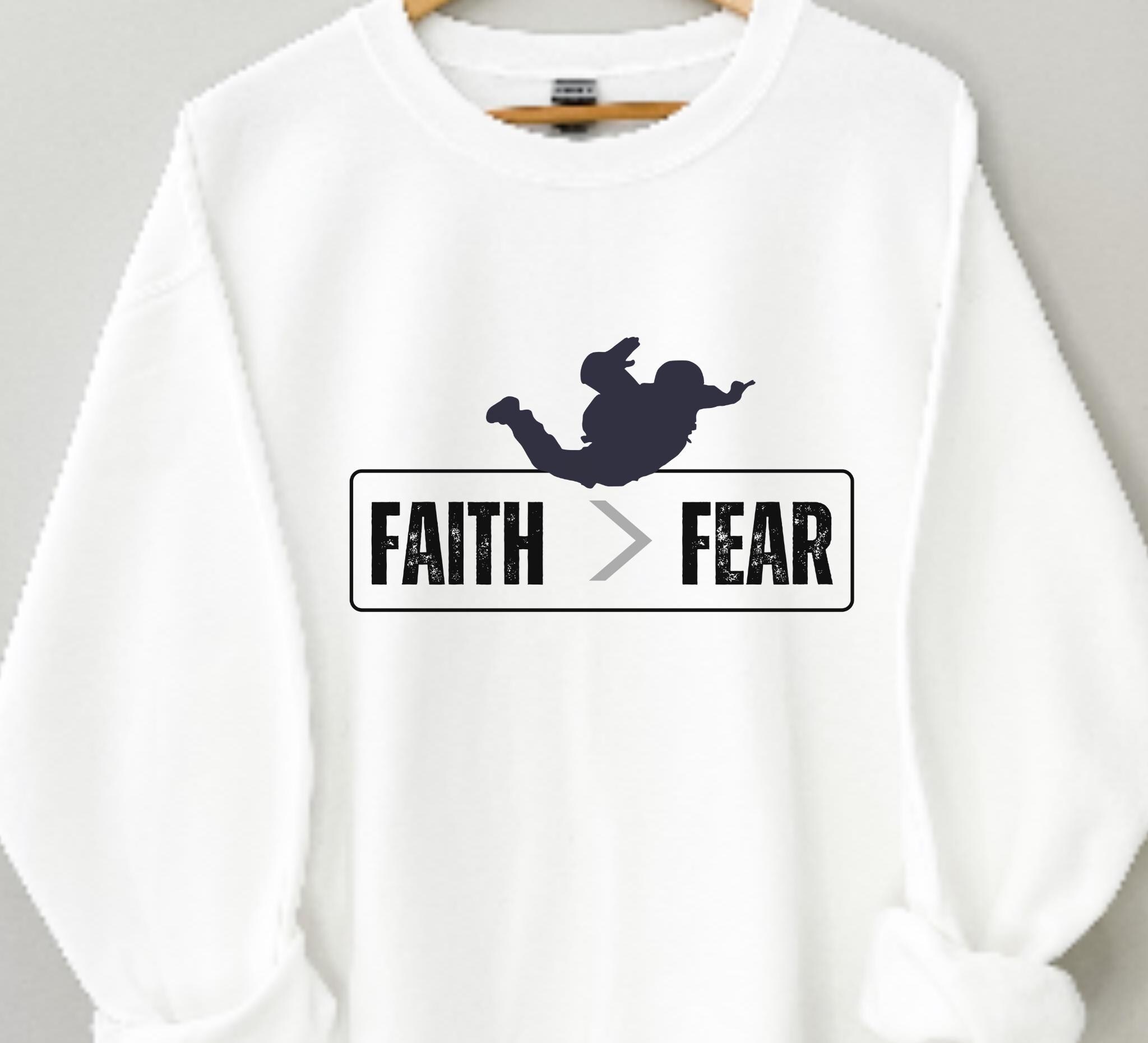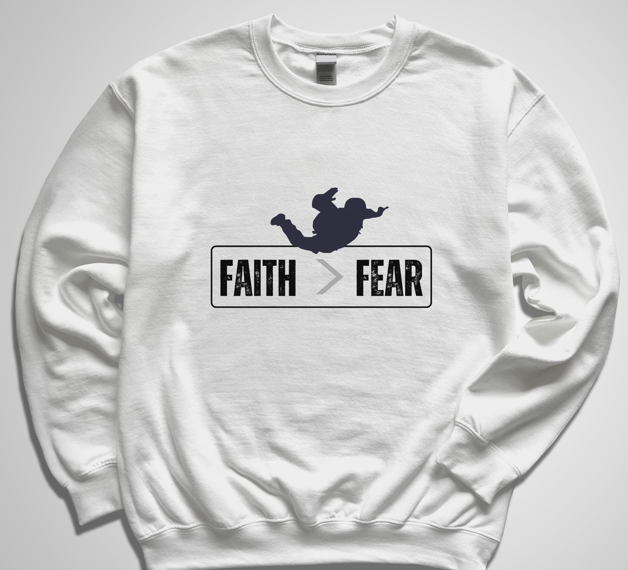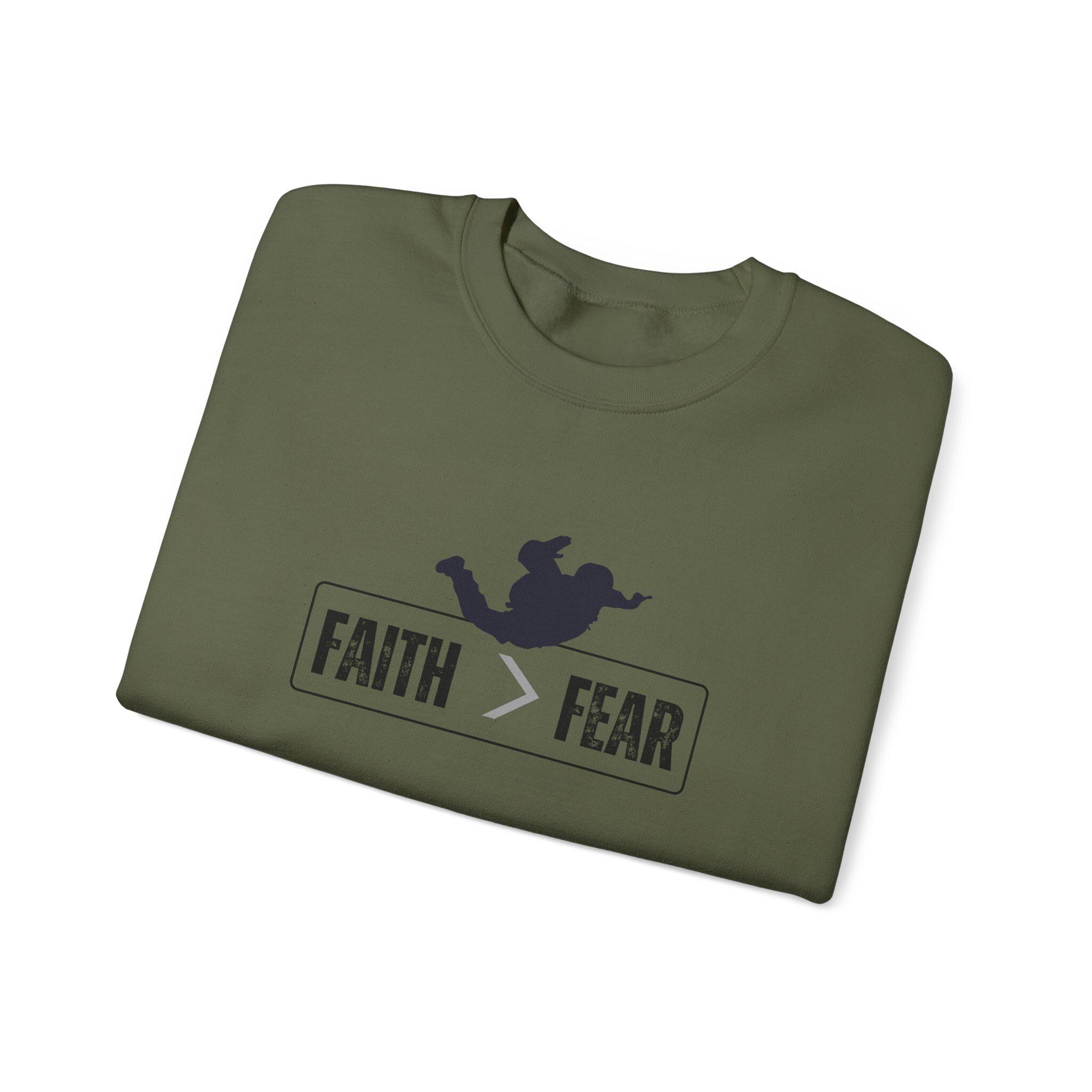 Embrace comfort and style with this Unisex Heavy Blend™ Crewneck Sweatshirt. Designed for casual wear, it effortlessly combines laid-back vibes with a touch of inspiration. Faith is > Greater than Fear is a strong reminder any mission is possible. The graphic adds a motivational flair, perfect for anyone looking to express positivity and confidence. This versatile sweatshirt is suitable for anyone, making it an excellent gift for friends or family. Ideal for PT, heading to the airstrip, or layering in winter. It's also a thoughtful choice for holidays, birthdays, or just because! Enjoy a sweatshirt that promotes comfort and encourages a fearless mindset.