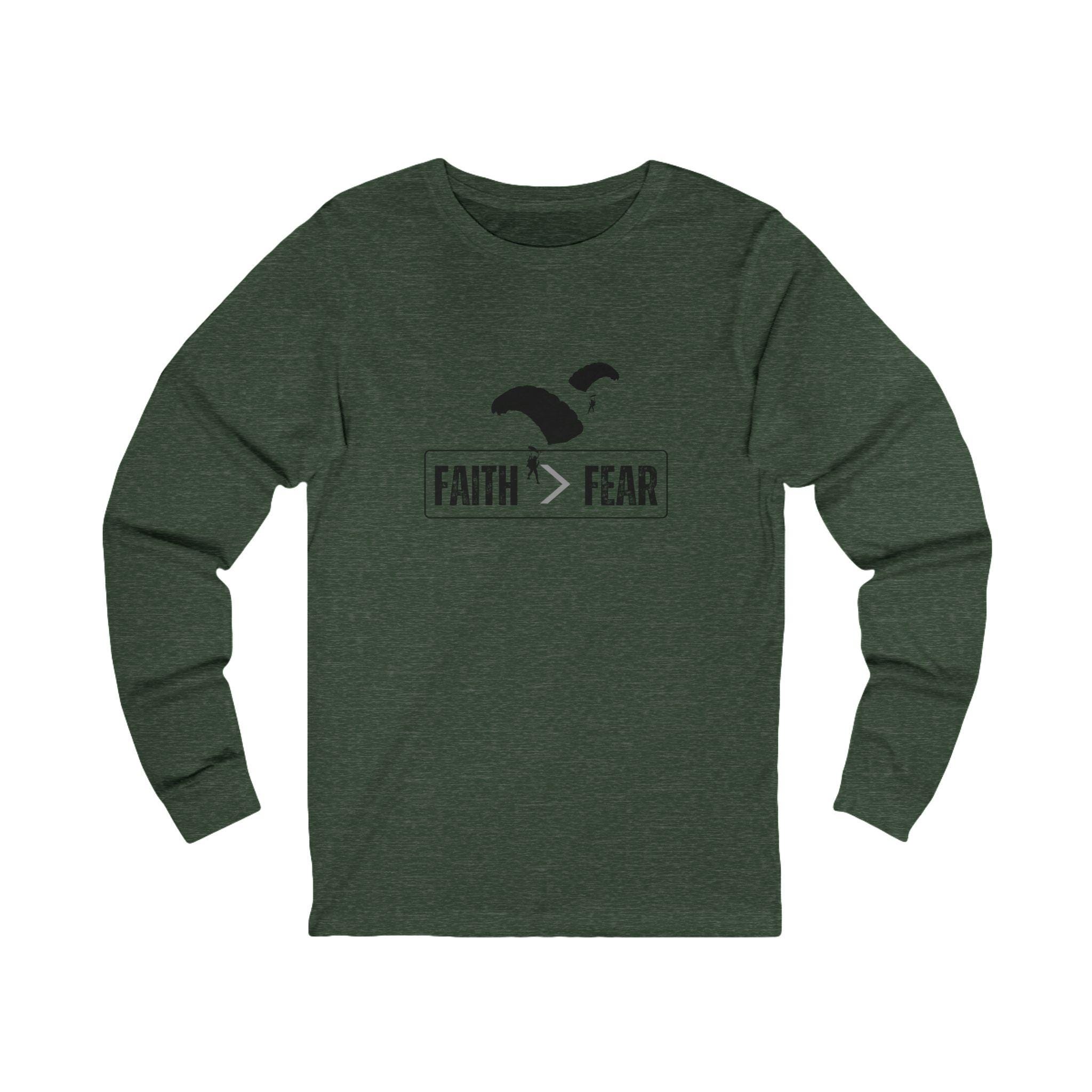 Discover a versatile Unisex Jersey Long Sleeve Tee that combines comfort and style effortlessly. Faith is Greater > Than Fear is a powerful reminder any mission is possible. This tee radiates a squared-away vibe perfect for layering or wearing standalone. It’s designed for those who value both fashion and function—ideal for heading to the airstrip, or weekend adventures. The perfect gift for friends and family, it truly resonates with individuals seeking inspiration, especially as a thoughtful token of encouragement. Elevate your wardrobe with a piece that fits seamlessly into your everyday life while making a statement about heading towards meaningful events.