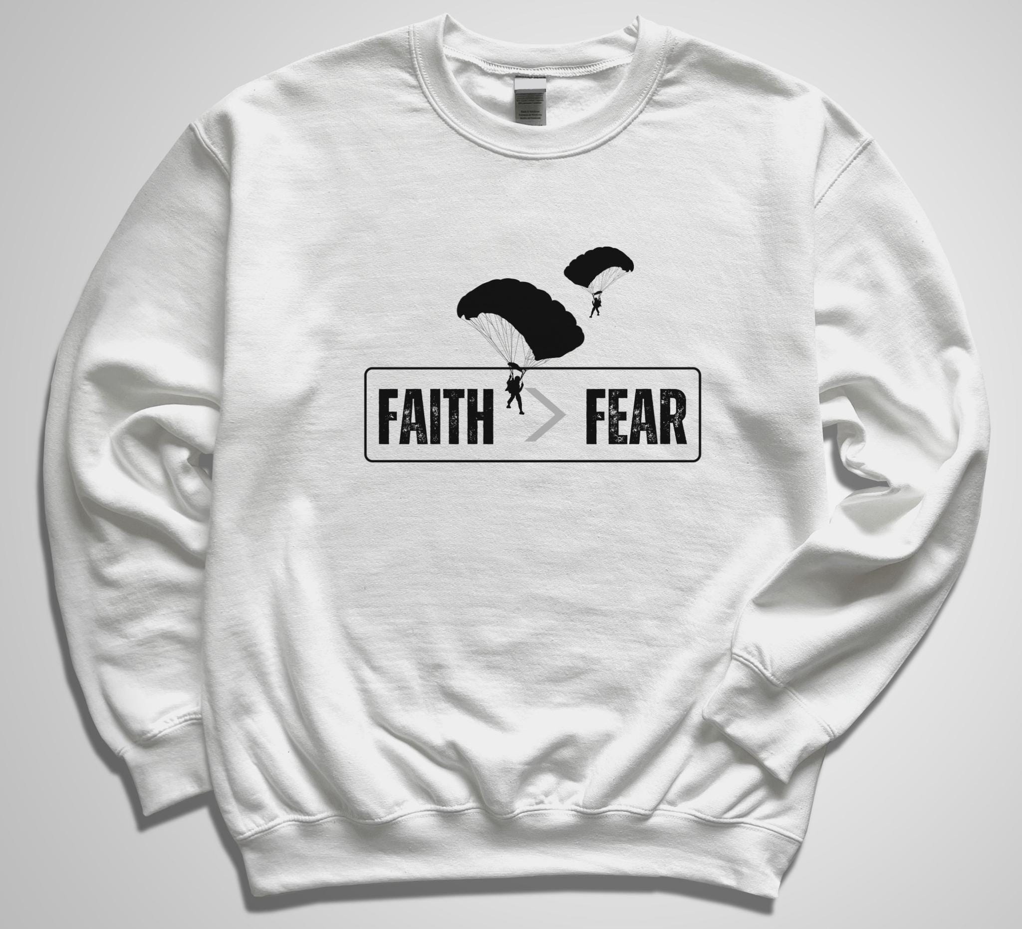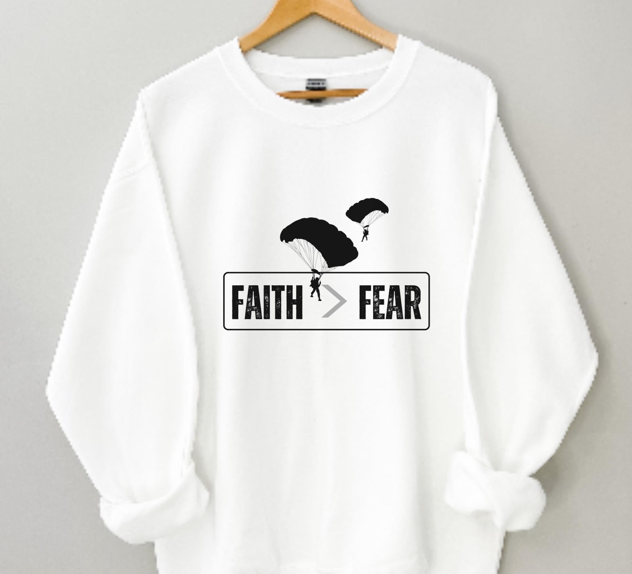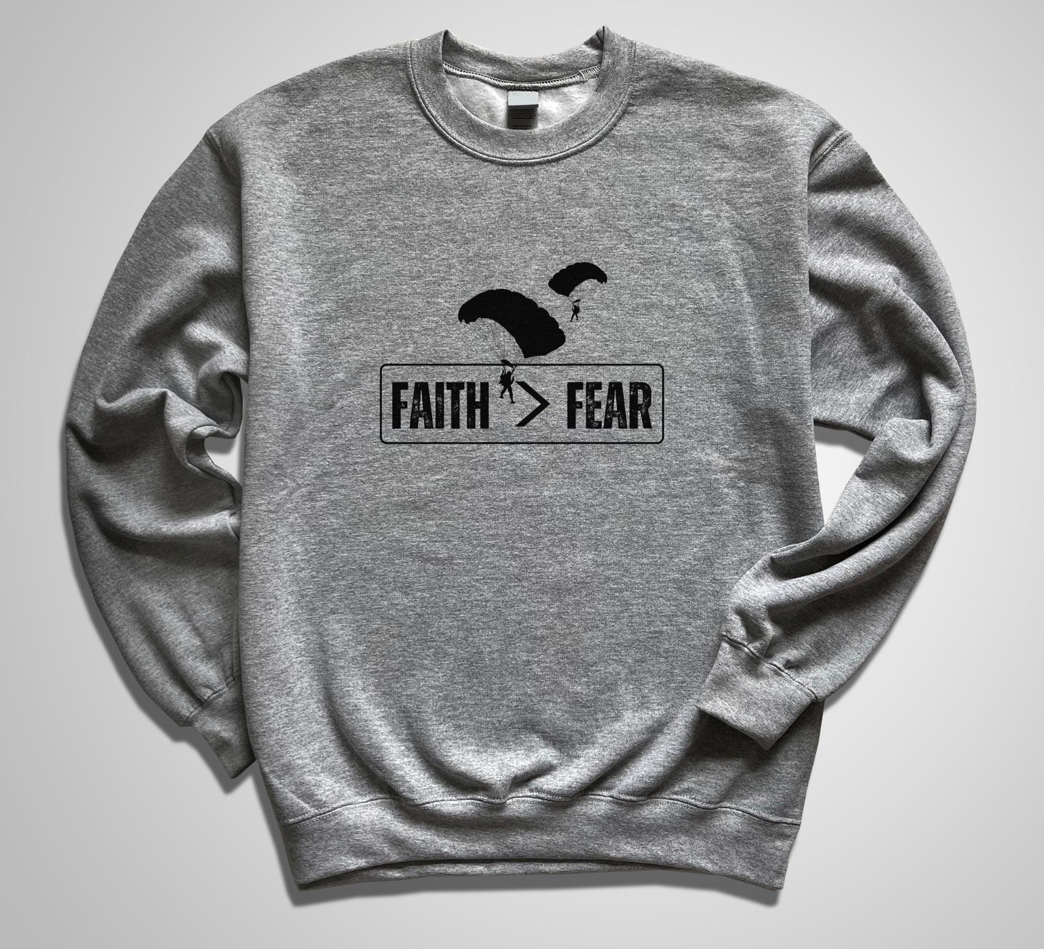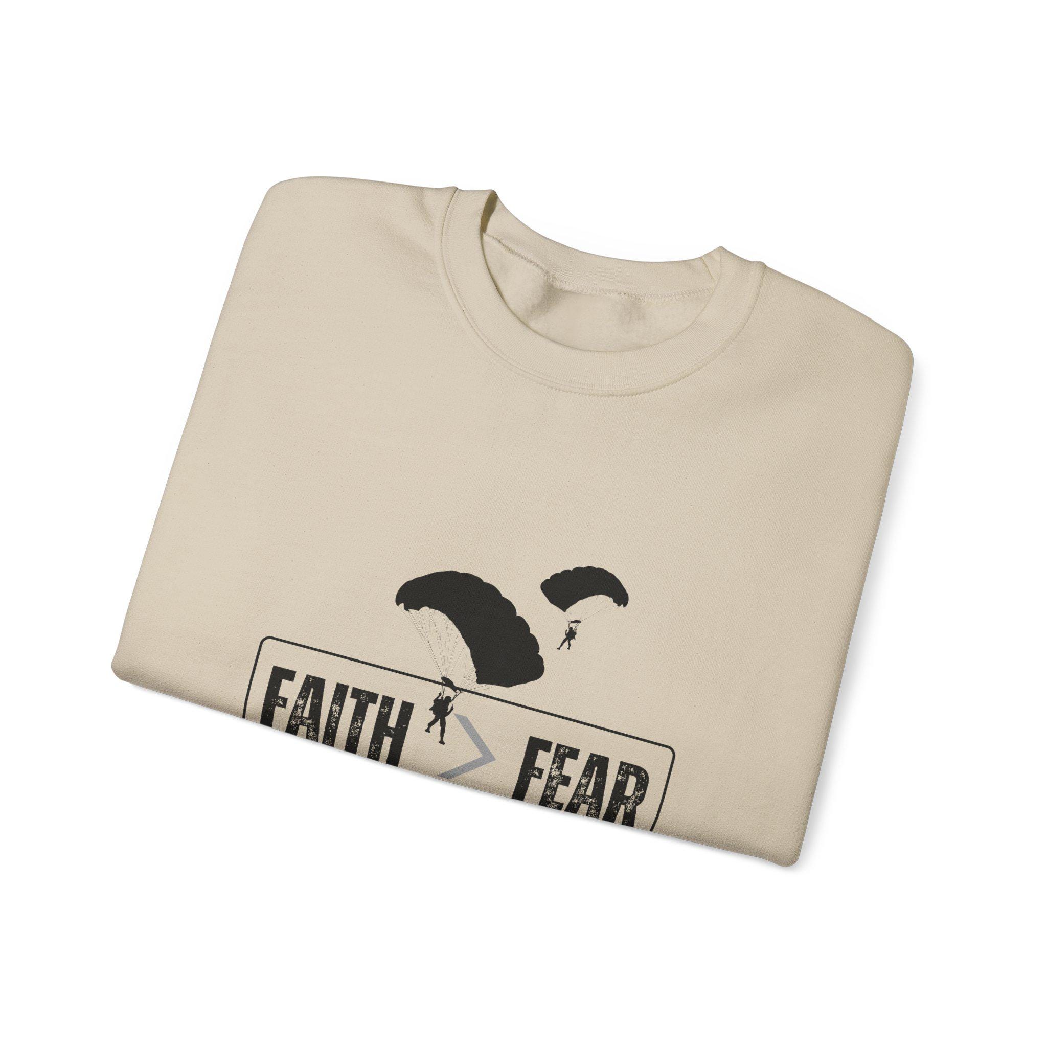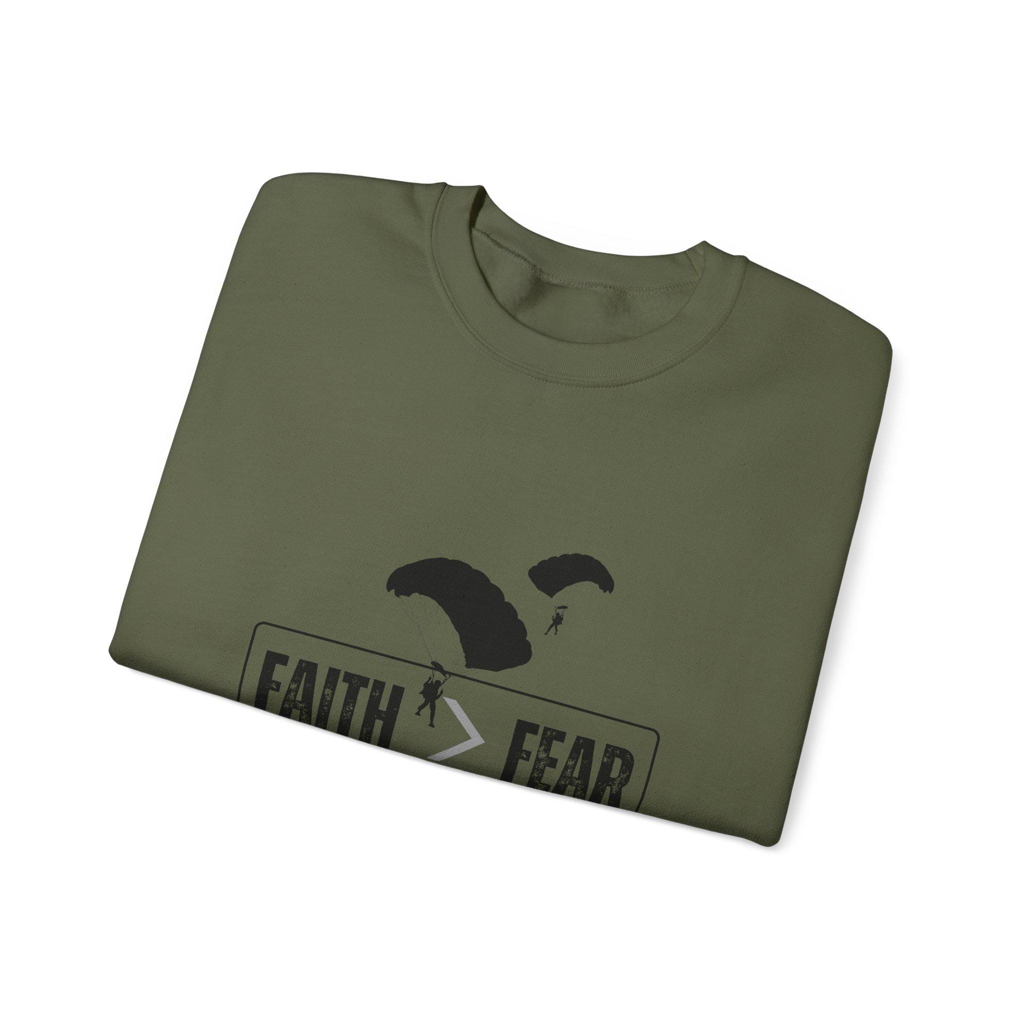 Discover comfort and style with this versatile Crewneck Sweatshirt. Faith is Greater > Than Fear is a powerful reminder any mission is possible. Perfect for layering or wearing on its own, it emanates a relaxed vibe that's ideal for heading to the airstrip or PT. Crafted for adults, this sweatshirt fits seamlessly into any wardrobe, making it a great gift for friends and family as a thoughtful gesture to show you care. Whether you’re lounging, running, on a jump, or enjoying a meetup with friends, it brings a sense of warmth and positivity. It’s an excellent choice for anyone who values comfort and style, inspiring confidence in every wear.