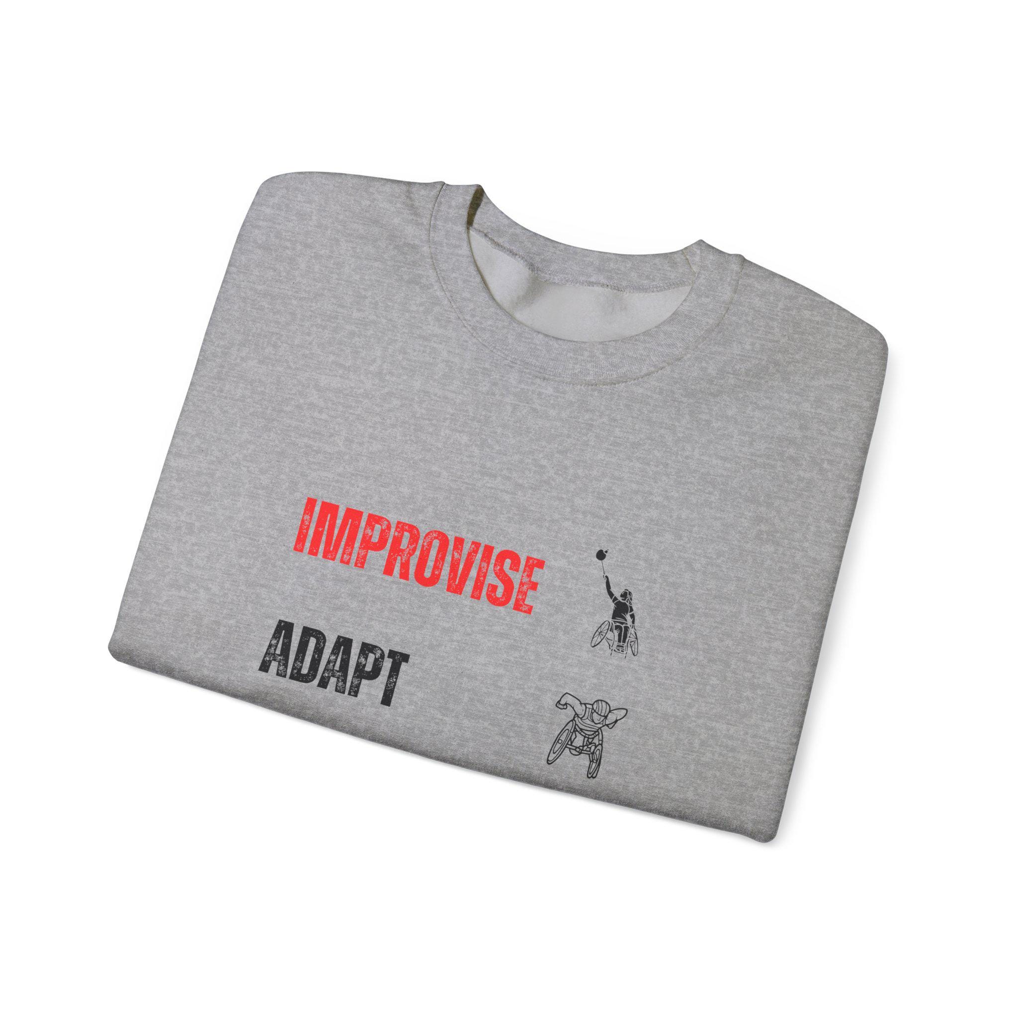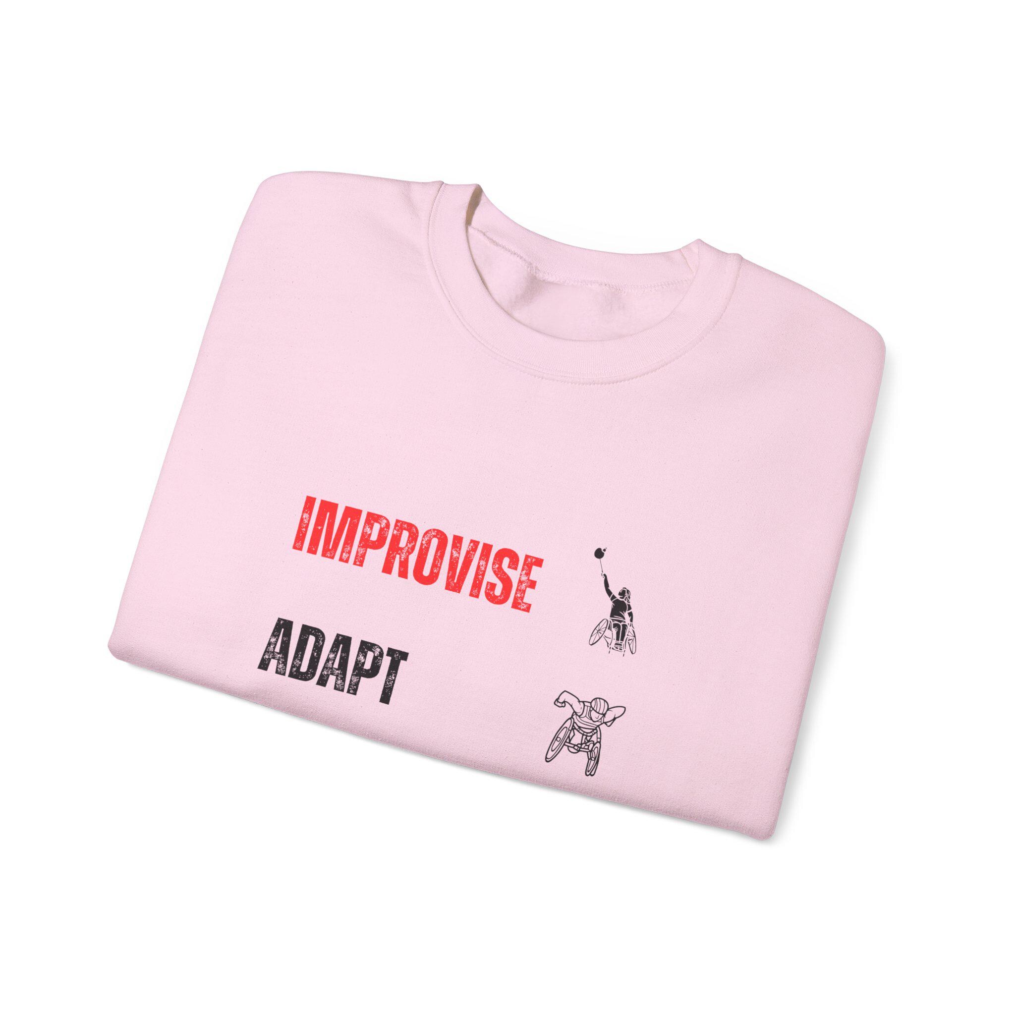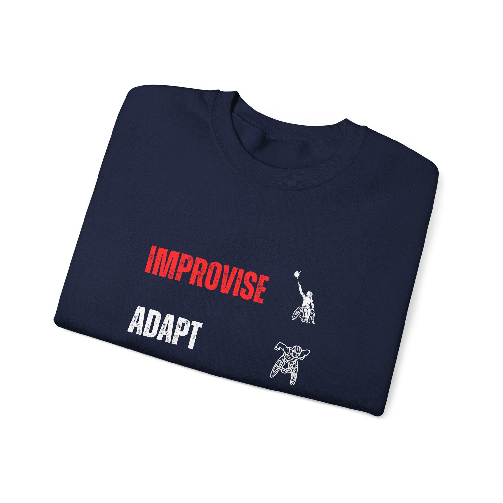 Warm, dependable, and quietly bold — this crewneck carries a simple mantra across the chest: Improvise. Adapt. Overcome. The clean white canvas and crisp tri-color text make the message pop without shouting. Light embroidery-like graphics beside each word add a touch of playfulness and movement, so the sweatshirt feels lived-in and ready for whatever the day throws at you. Slip it on after an early morning run, on a long travel day, or when you need a little reminder to keep going. The fit is classic and forgiving, the fabric steady and reassuring: it’s the kind of layer you reach for when plans change and you want comfort that follows through.
