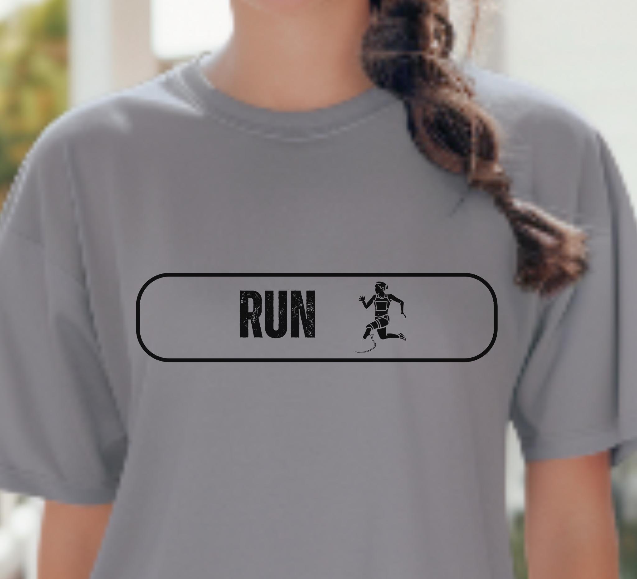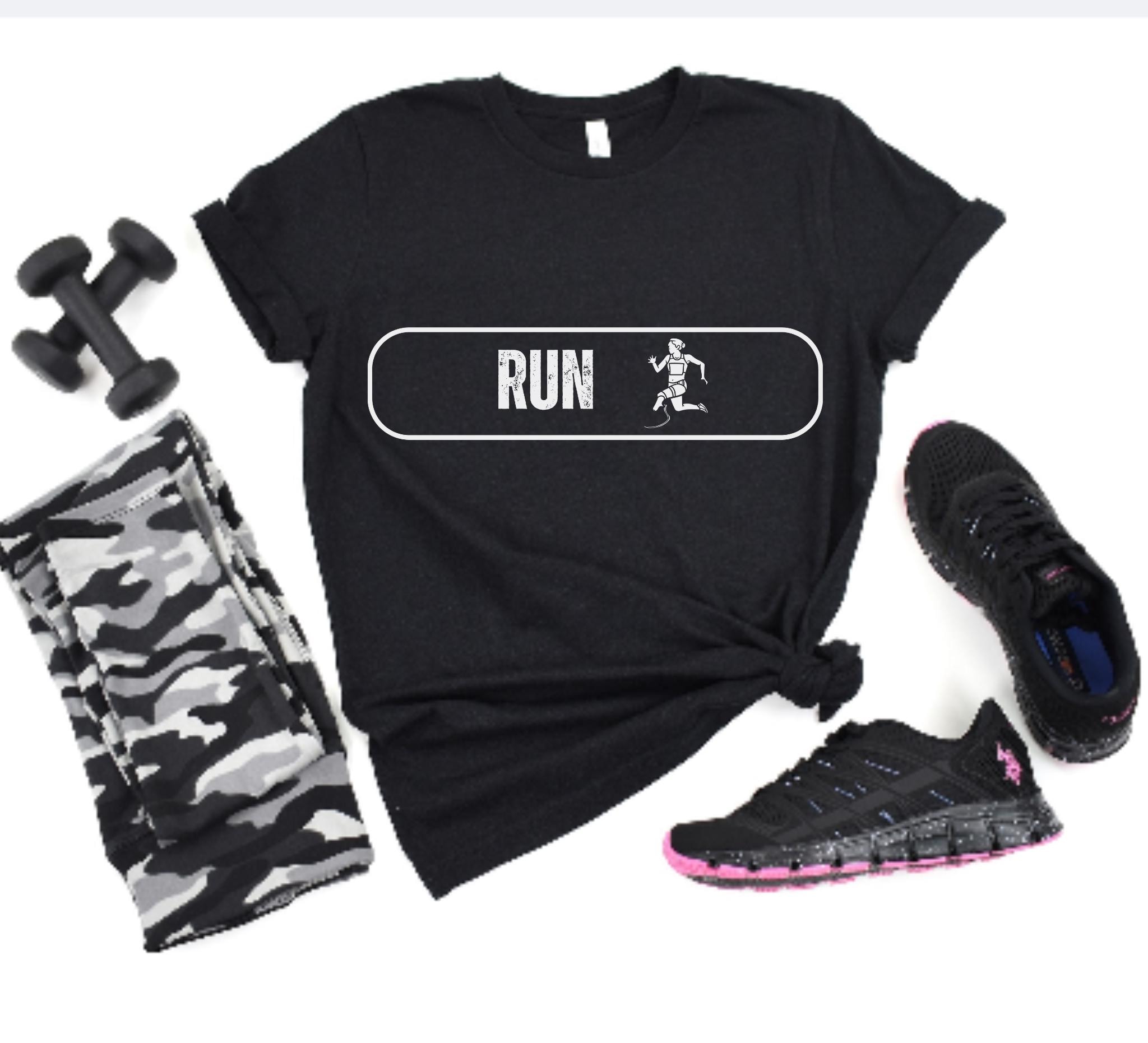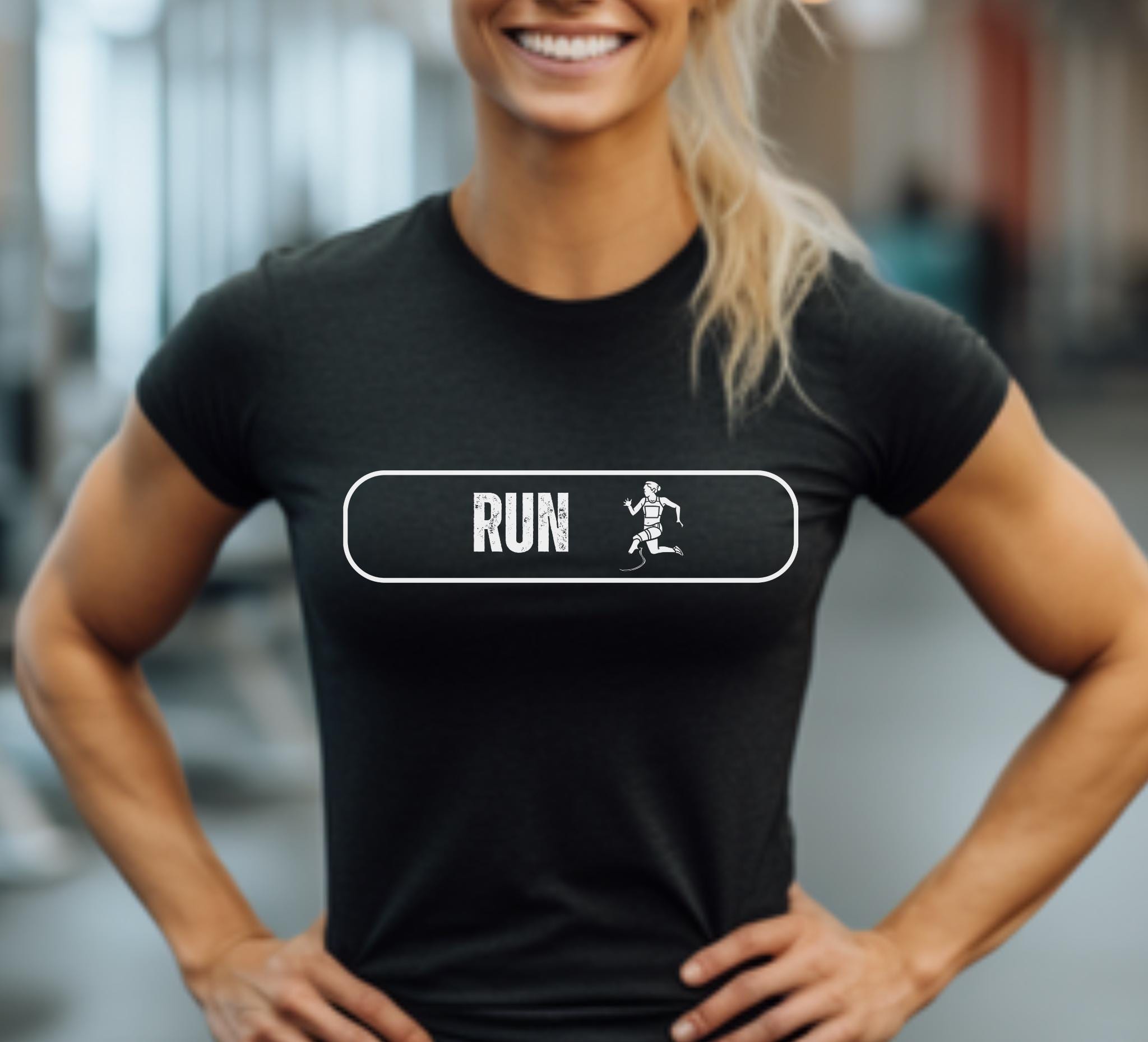 Lightweight, breathable, and quietly bold — this tee wears like your go-to for morning miles, city errands, or a casual meet-up. The small, minimalist “RUN” badge sits centered on the chest with a tiny runner icon, keeping the message subtle but unmistakable. The soft Airlume combed and ring-spun cotton feels smooth against skin while the retail crew neck and clean side seams hold a neat silhouette. Tear-away label and shoulder tape add comfort and durability, so this shirt keeps its shape and stays comfortable lap after lap. Wear it with leggings for training, layered under a jacket for cooler mornings, or with jeans for an off-duty athleisure look.