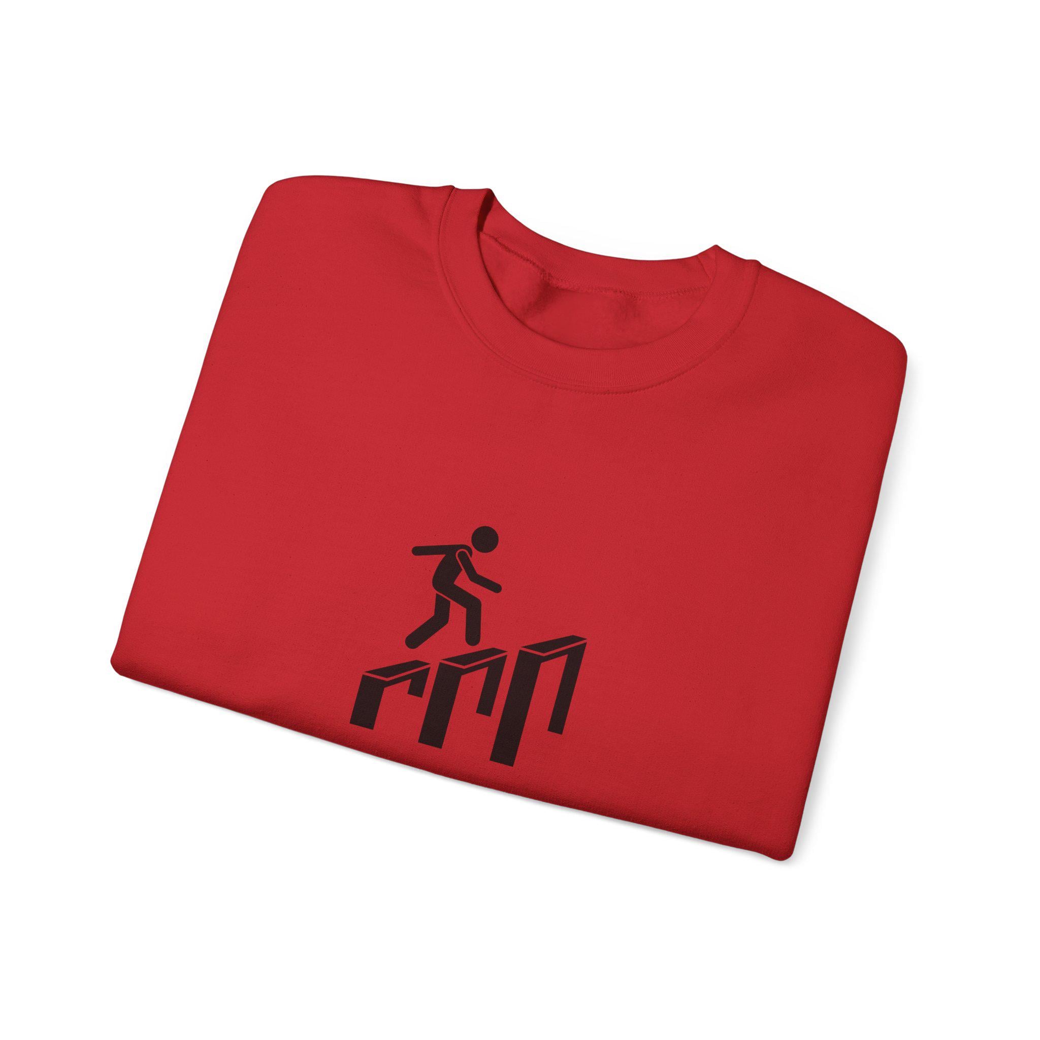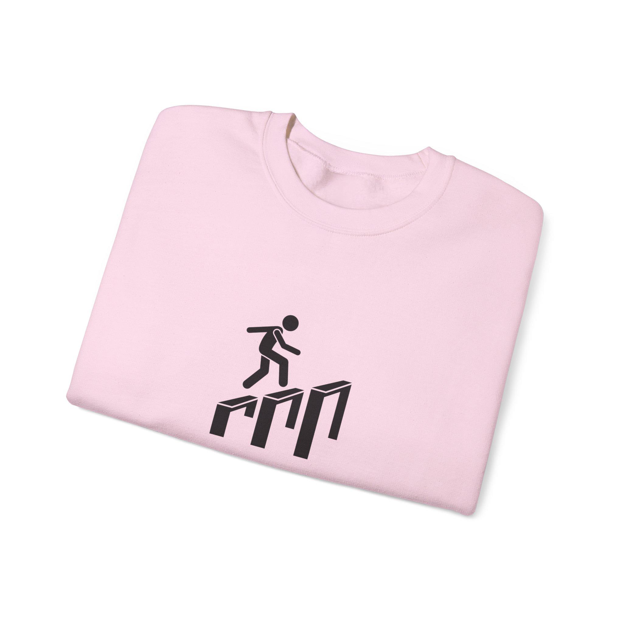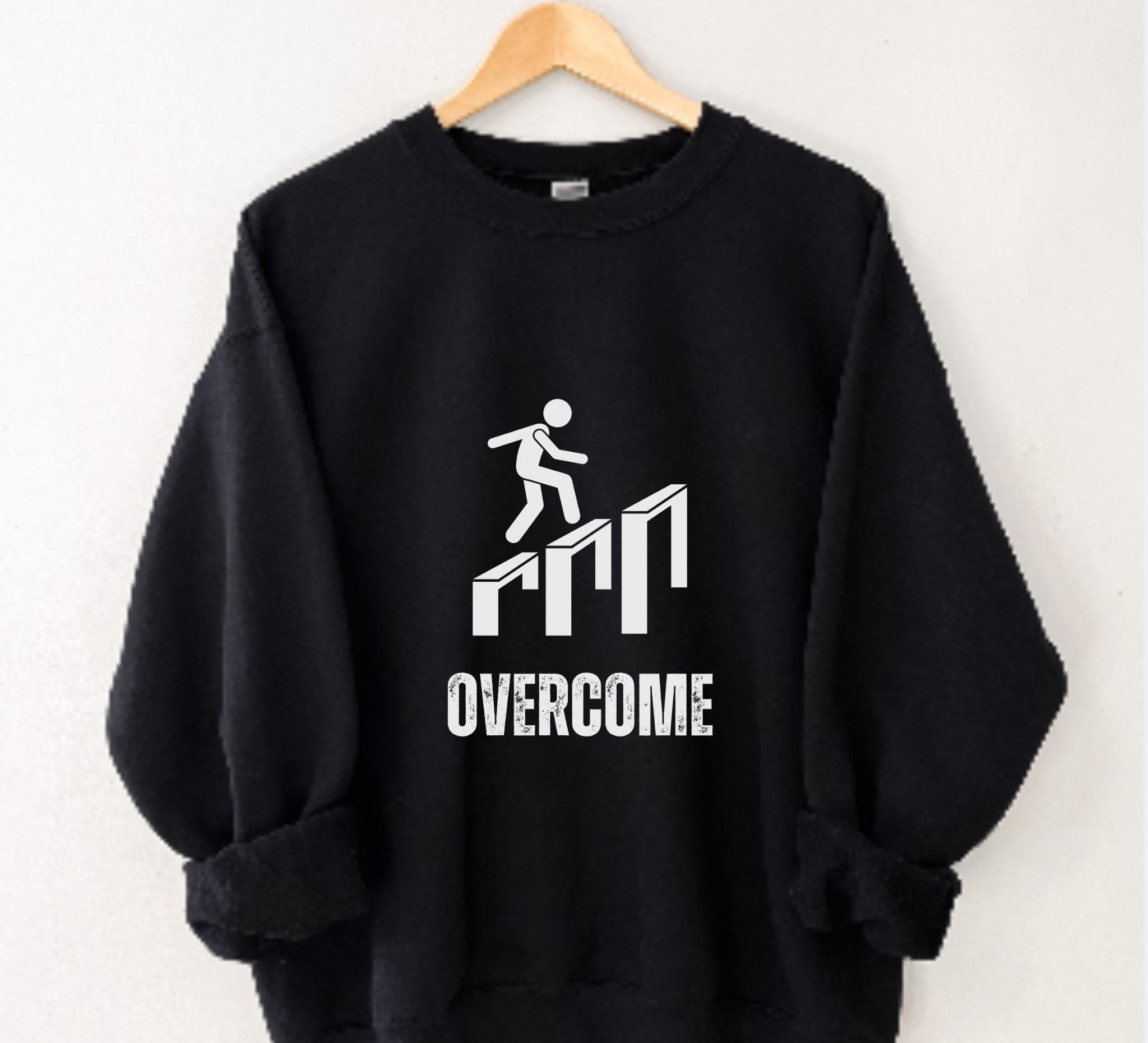This cozy crewneck sweatshirt carries a quiet, motivating message. Soft, medium-heavy cotton-poly fabric cradles you while a simple monochrome graphic — a figure stepping over the obstacles beneath — reads like a small, steady reminder: keep moving forward. The classic crew fit and ribbed collar give a clean, worn-in look that layers easily under a jacket or stands alone on cooler mornings. Subtle enough for everyday wear, the embroidered/printed design adds texture and personality without shouting. Wear it to workouts, late-night study sessions, recovery days, or when you need a gentle nudge to push past the next hurdle.