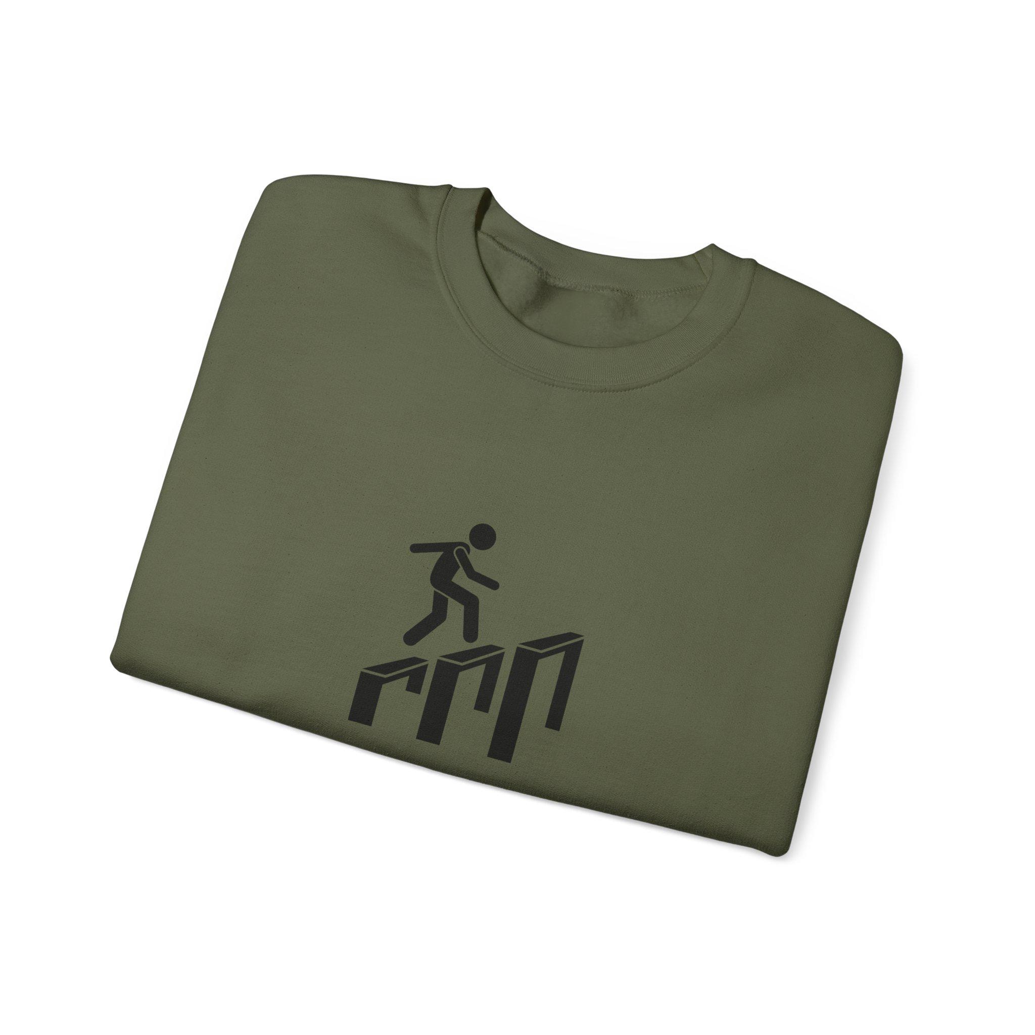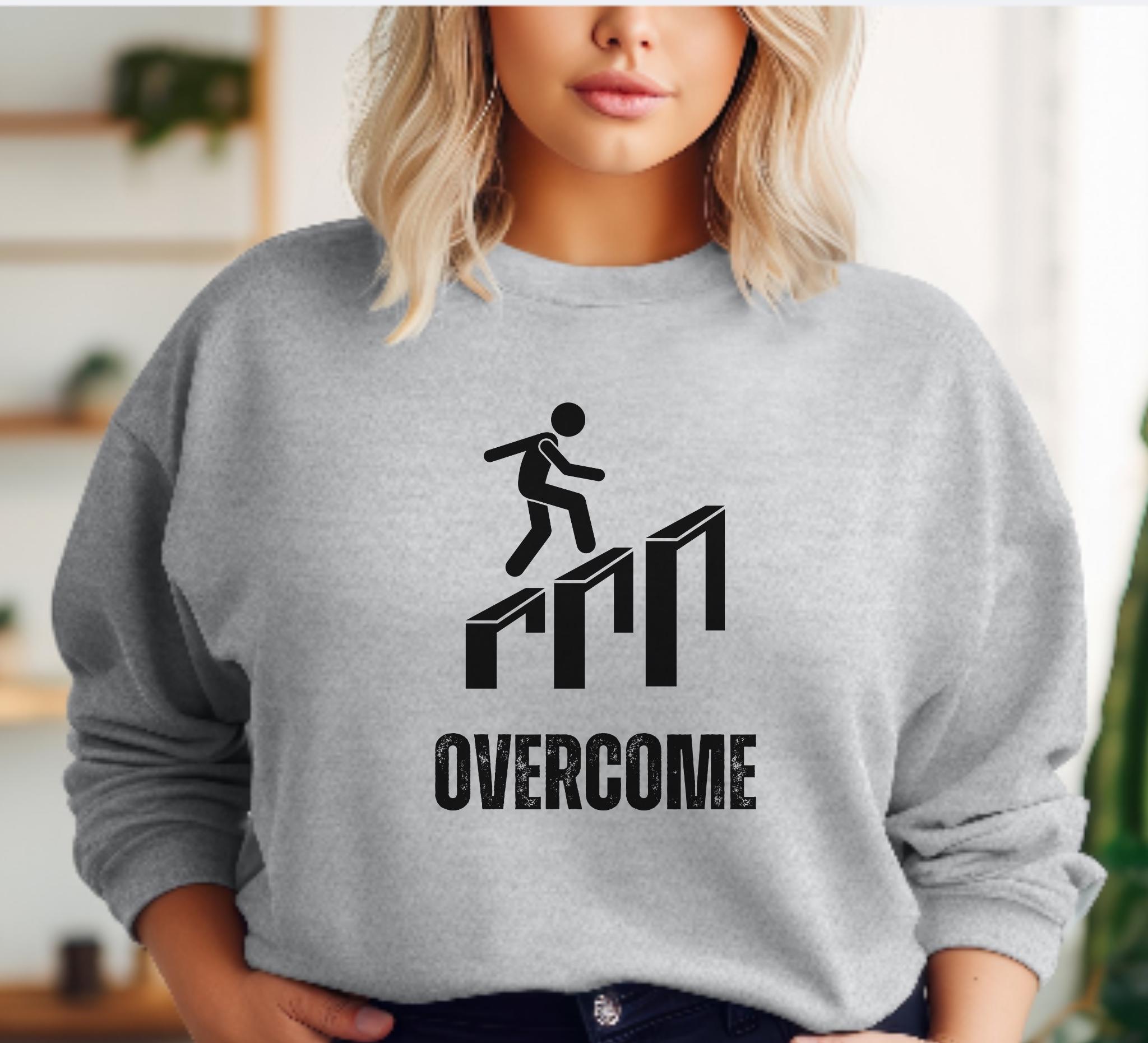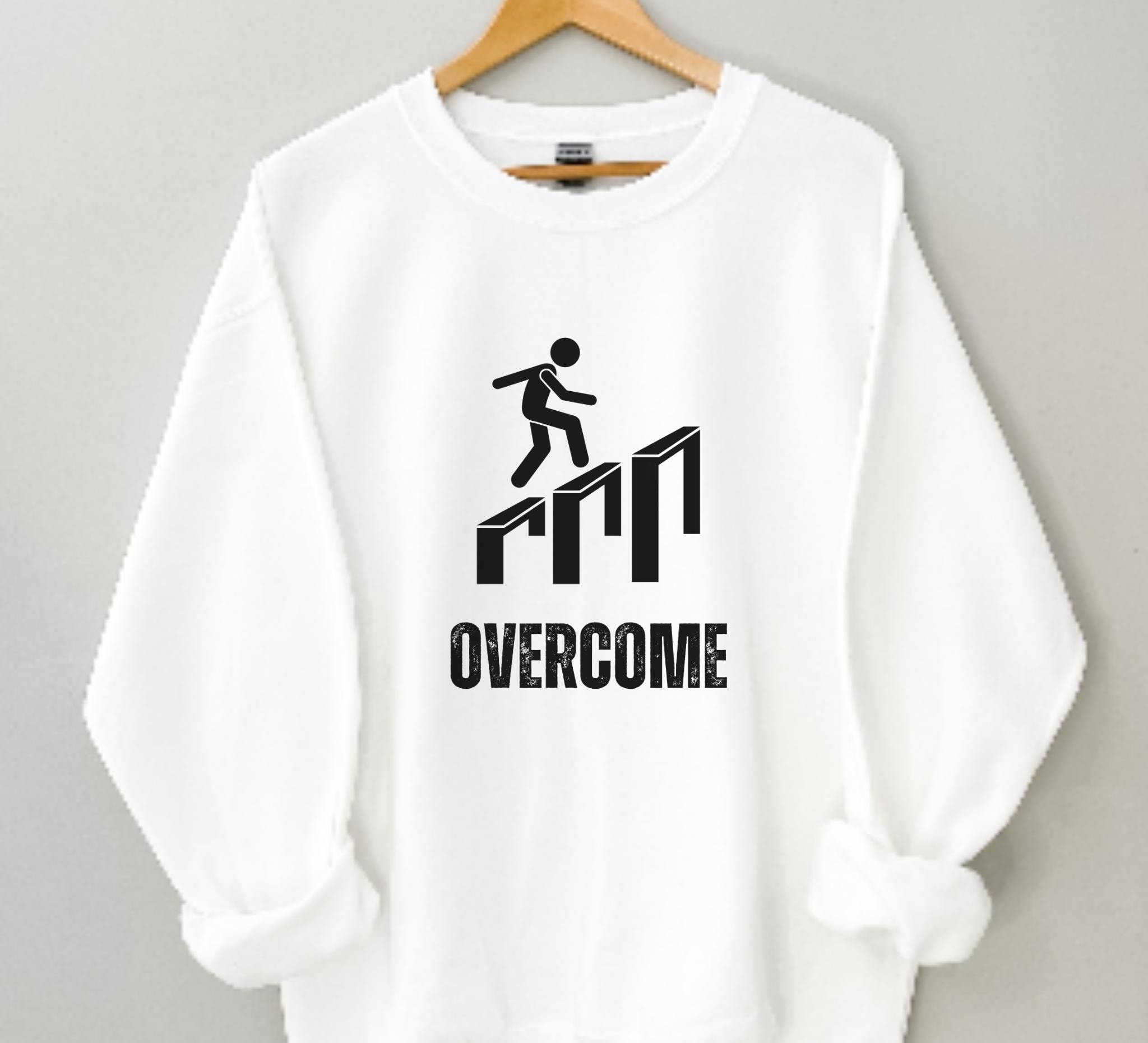 This cozy crewneck sweatshirt carries a quiet, motivating message. Soft, medium-heavy cotton-poly fabric cradles you while a simple monochrome graphic — a figure stepping over the obstacles beneath — reads like a small, steady reminder: keep moving forward. The classic crew fit and ribbed collar give a clean, worn-in look that layers easily under a jacket or stands alone on cooler mornings. Subtle enough for everyday wear, the embroidered/printed design adds texture and personality without shouting. Wear it to workouts, late-night study sessions, recovery days, or when you need a gentle nudge to push past the next hurdle.