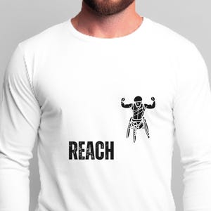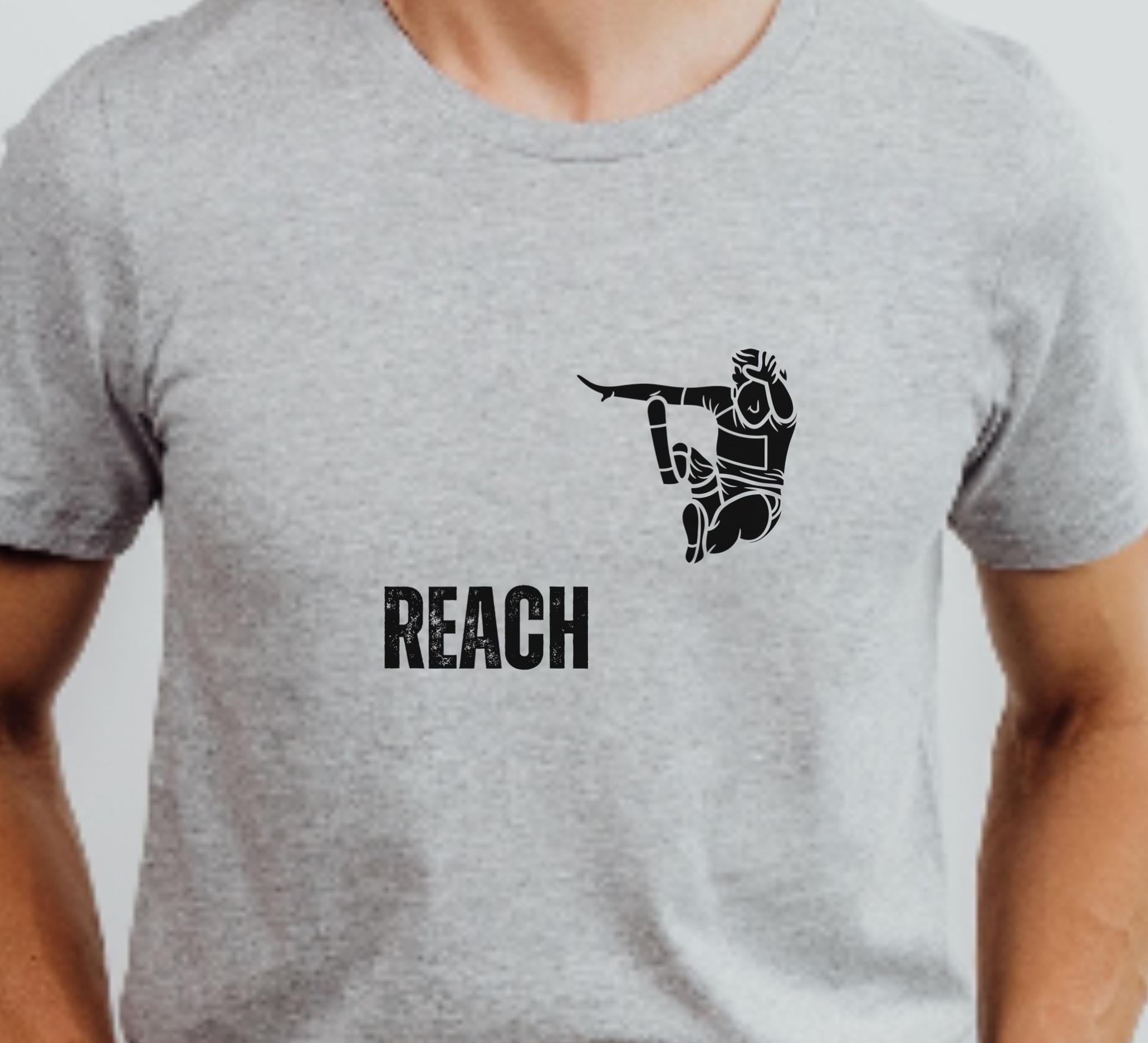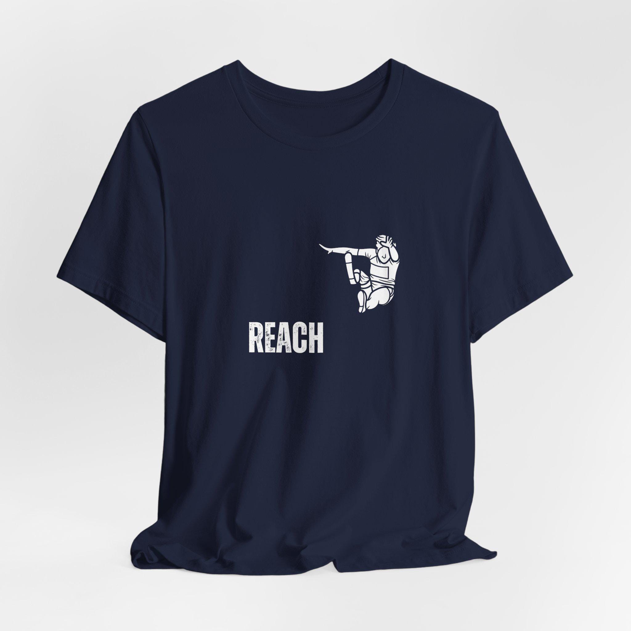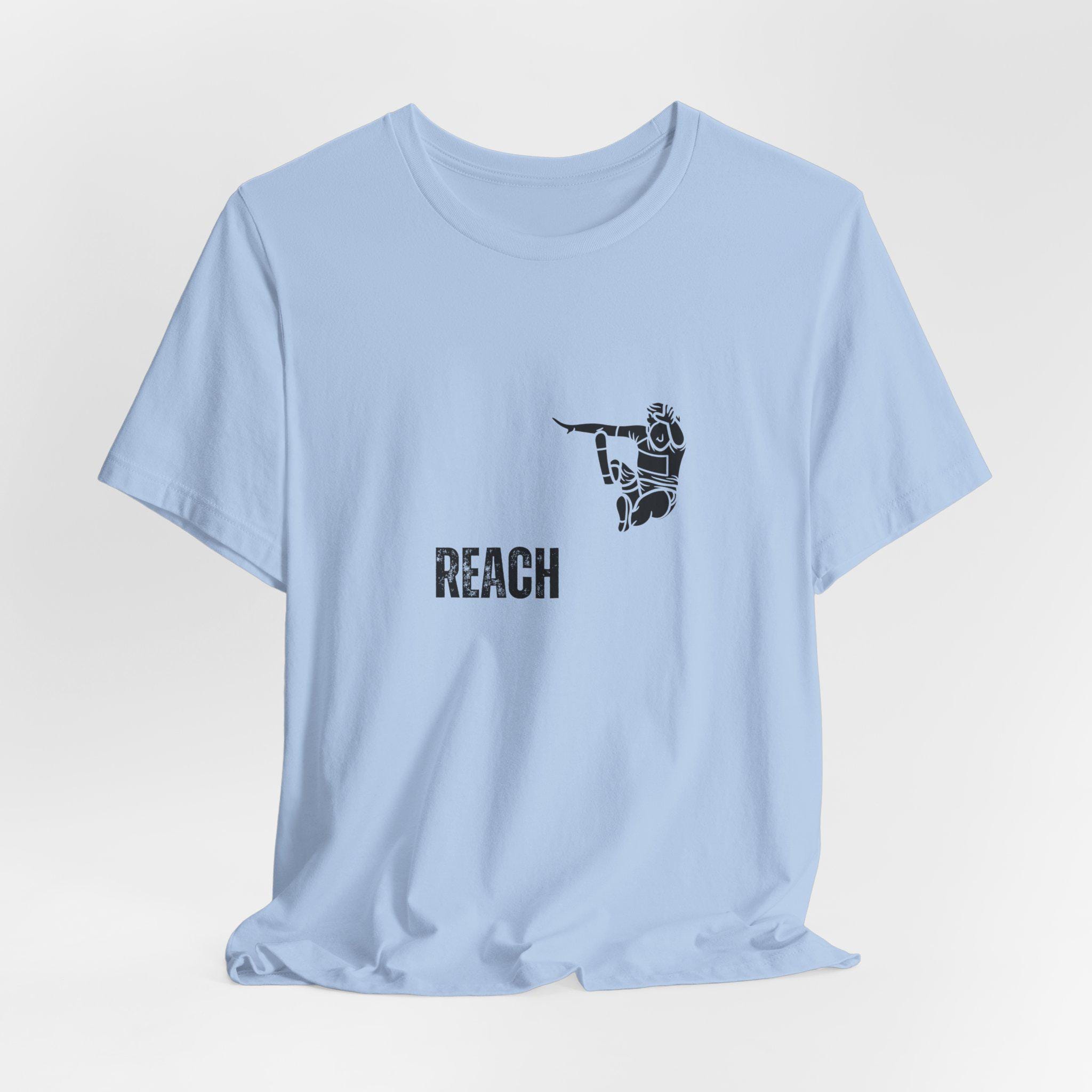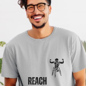 Lightweight, breathable, and quietly bold — this tee carries a small, focused graphic that speaks to people who chase goals and push limits. The front-left print shows a stylized figure reaching outward above an inspirational word rendered in a textured, slightly distressed style for an honest, lived-in feel. It layers easily under jackets or wears alone on warm days. The crew neckline and retail fit keep the silhouette neat and versatile, while the soft Airlume combed cotton feels gentle against the skin. Subtle but confident, this shirt fits into routines where movement, intention, and understated motivation matter.