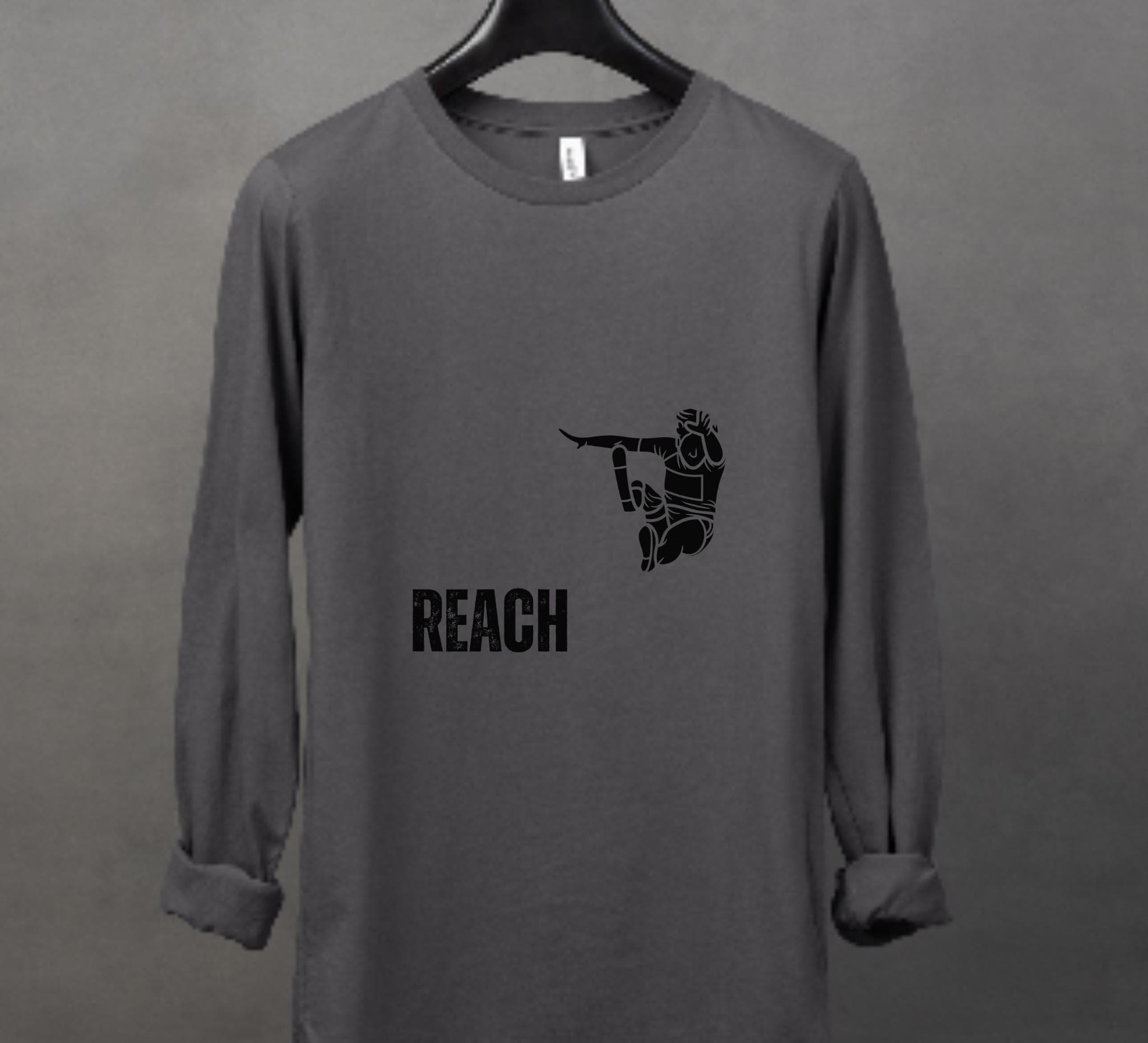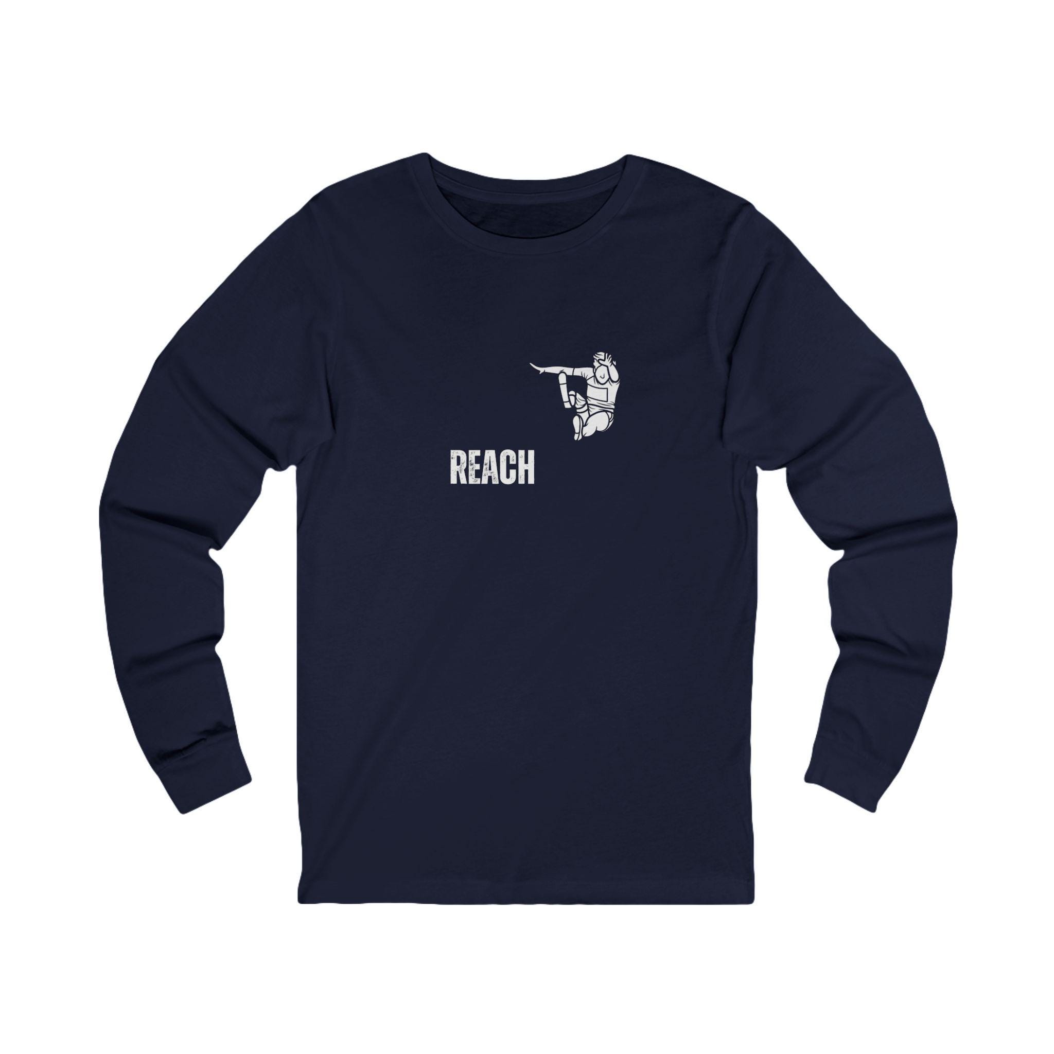 A lightweight long-sleeve tee that reads like a quiet promise to keep moving forward. Soft, breathable fabric and a clean retail fit let the subtle front graphic — reaching upward beside the single word — speak without shouting. Wear it on crisp mornings, layered under a jacket for approach hikes, or at home when you need a gentle reminder to push a little farther. The slim, structured silhouette and ribbed cuffs give it a neat, lived-in look that fits into an active, intentional lifestyle.