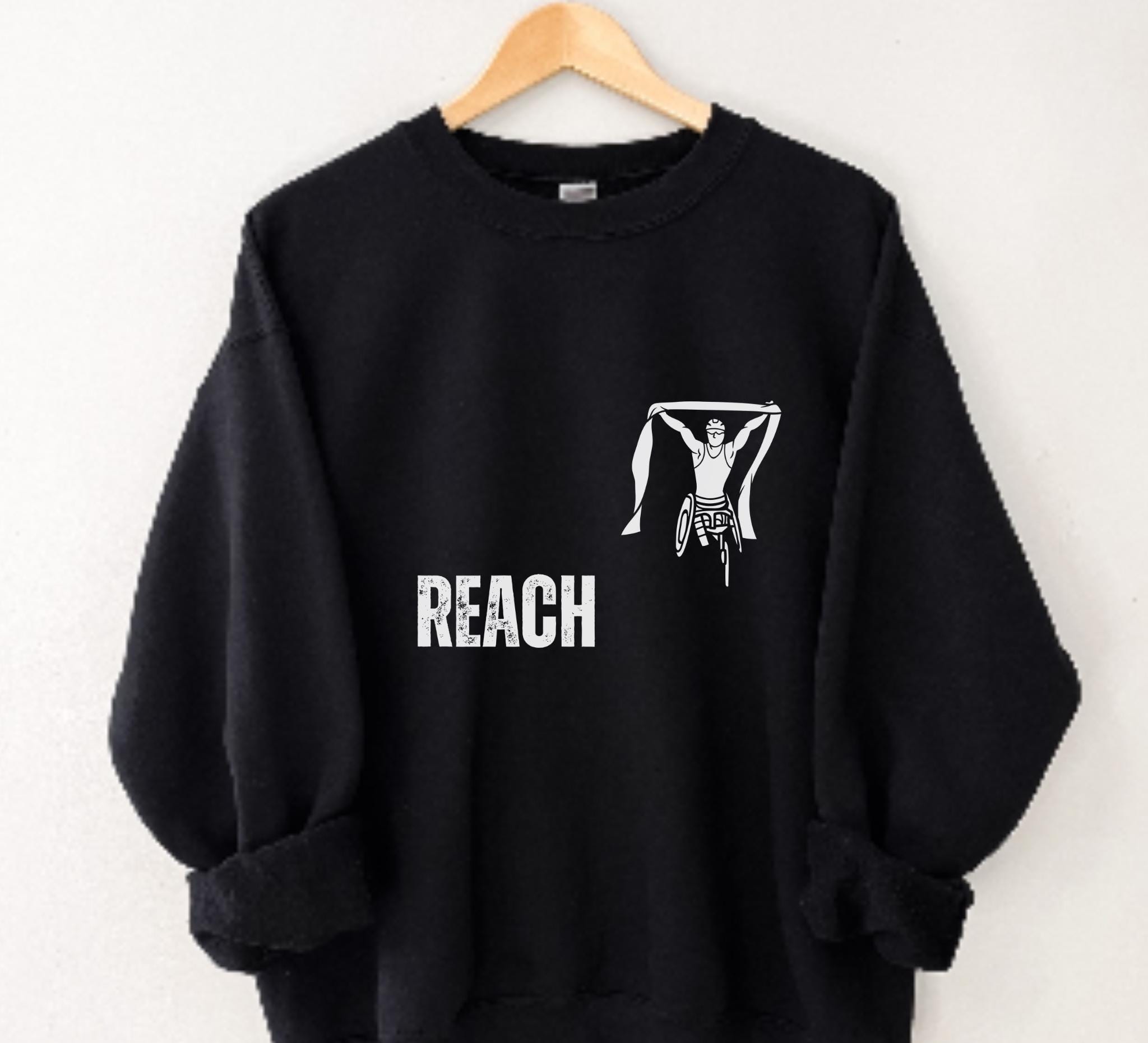 Lightweight warmth with a quiet, focused message. This crewneck sits loose in the right places and feels soft against the skin, letting the minimalist embroidered design — a small figure reaching through a framed opening beside the word — do the talking. It’s the kind of sweatshirt you pull on when you need calm confidence. The inspirational print and clean lines keep the look intentional and wearable every day.