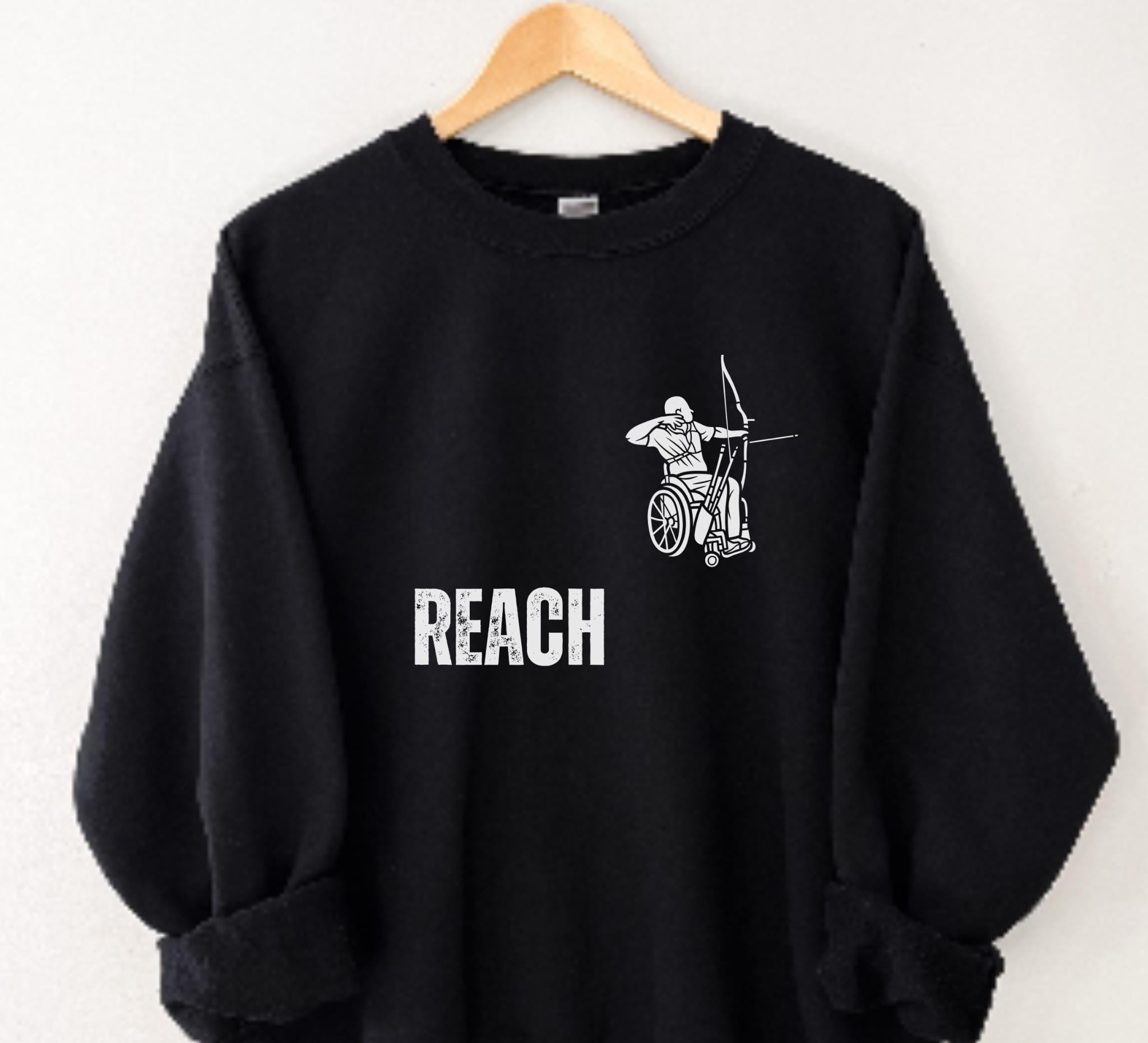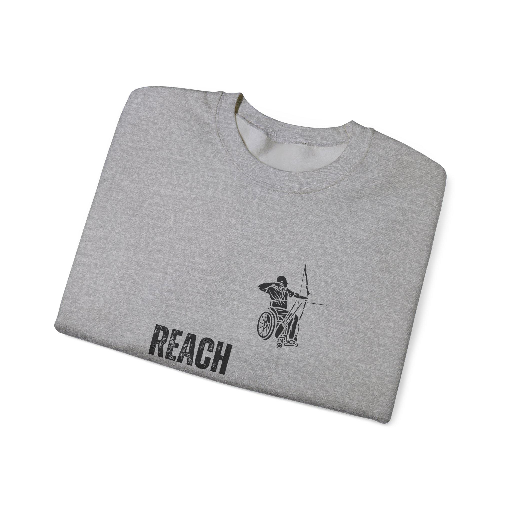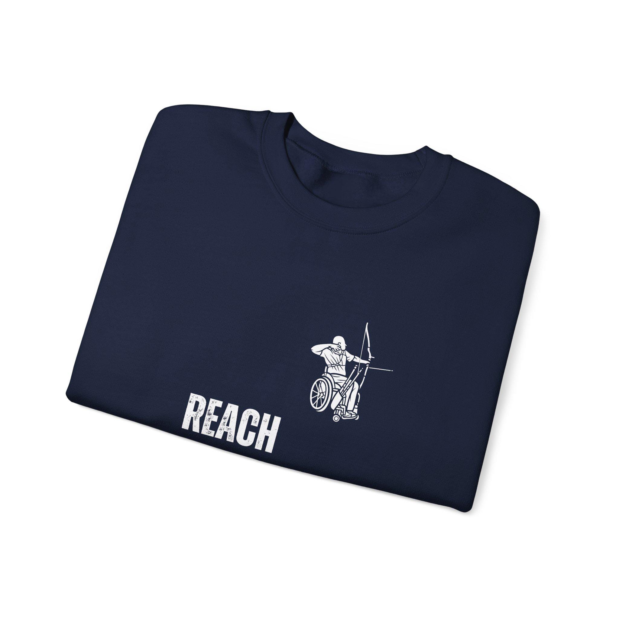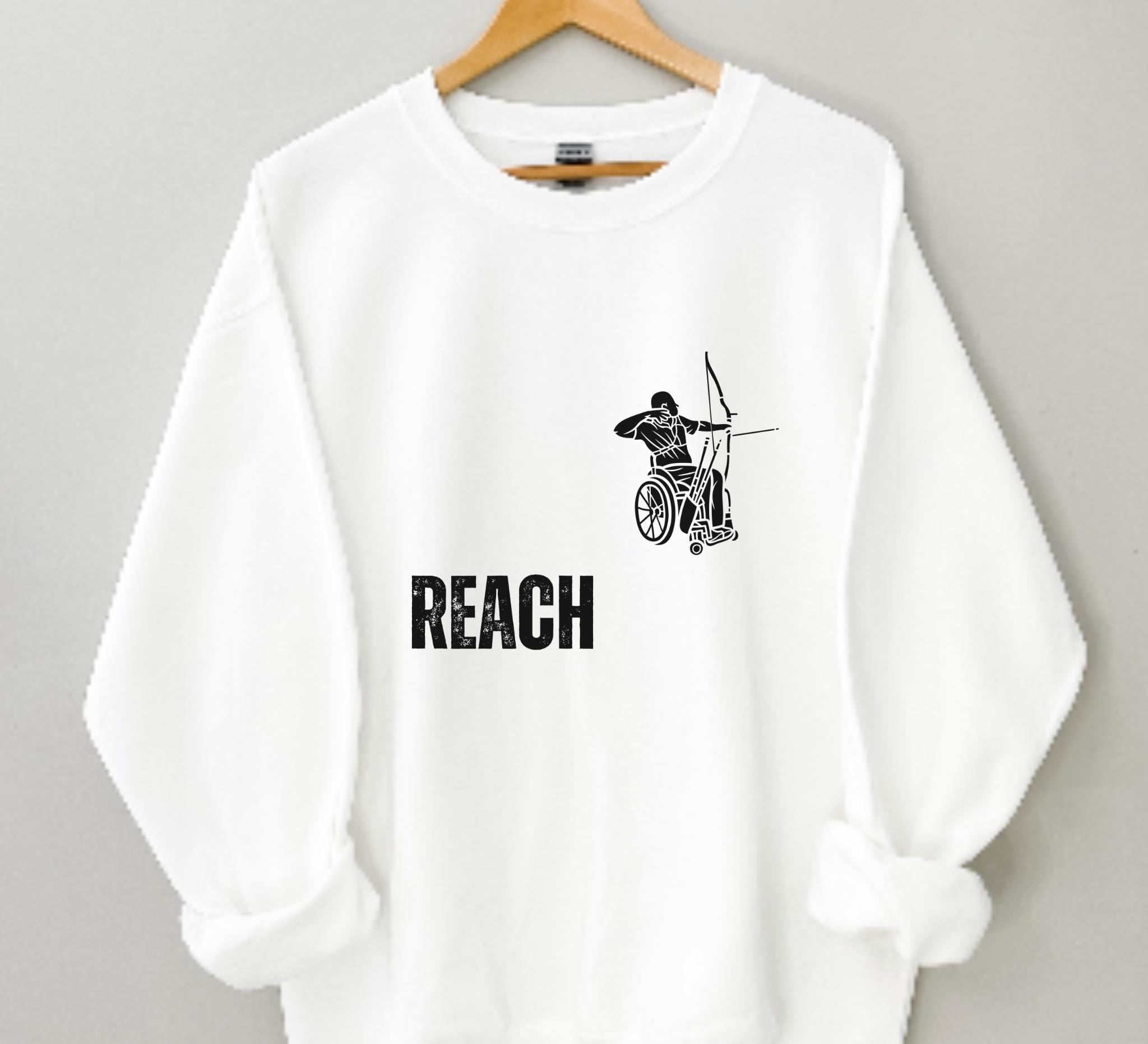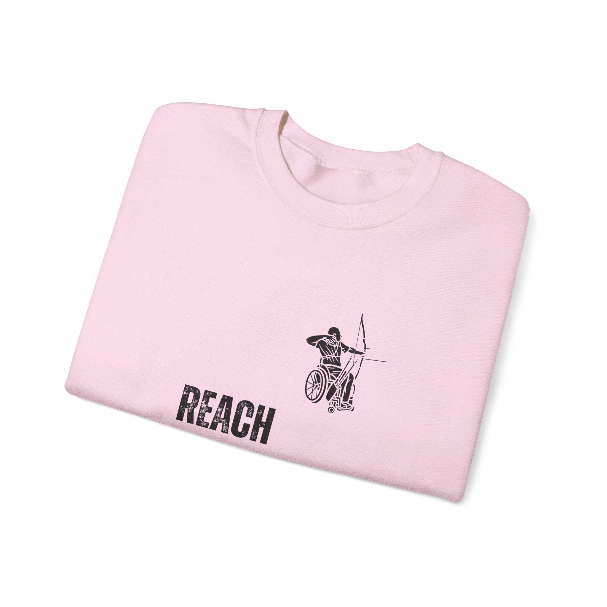 A soft, clean white crewneck sweatshirt with a subtle, inspirational graphic — a small archer illustration paired with one bold word across the chest. The mid-weight cotton-poly blend feels cozy without bulk, and the classic fit and ribbed collar keep the silhouette timeless and easy to layer. Wear it on training mornings, while coaching, or as a quiet reminder to stretch for bigger goals. The muted design reads like a personal mantra rather than loud branding, so it slips into everyday outfits and keeps the focus on intention and calm determination.