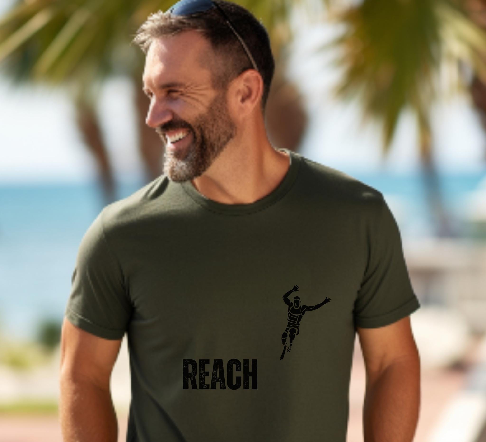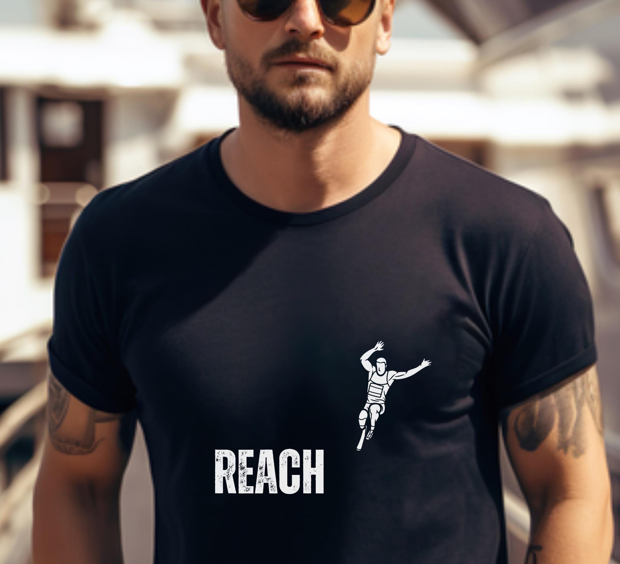 Lightweight, breathable, and quietly expressive — this cotton tee says more with less. A distressed-type wordmark sits low on the front beside a small, reaching figure in motion; it reads like a private prompt to move, stretch, chase, or simply keep going. The slim crew neck and clean retail fit make it easy to layer under jackets or pair with weekend jeans. It drifts easily from morning runs to evening training sessions, slipping into the rhythms of someone who values quiet grit and everyday momentum.