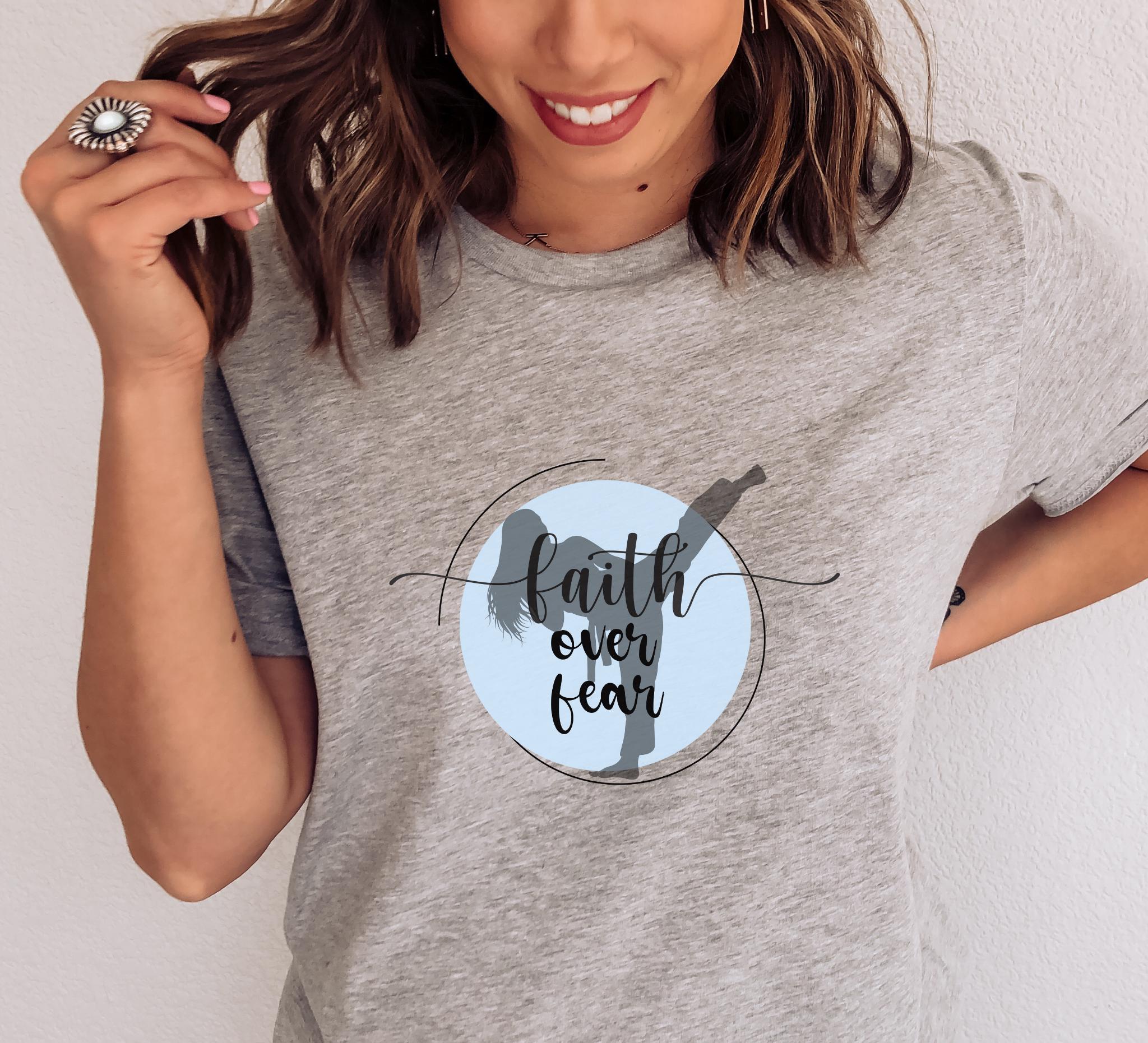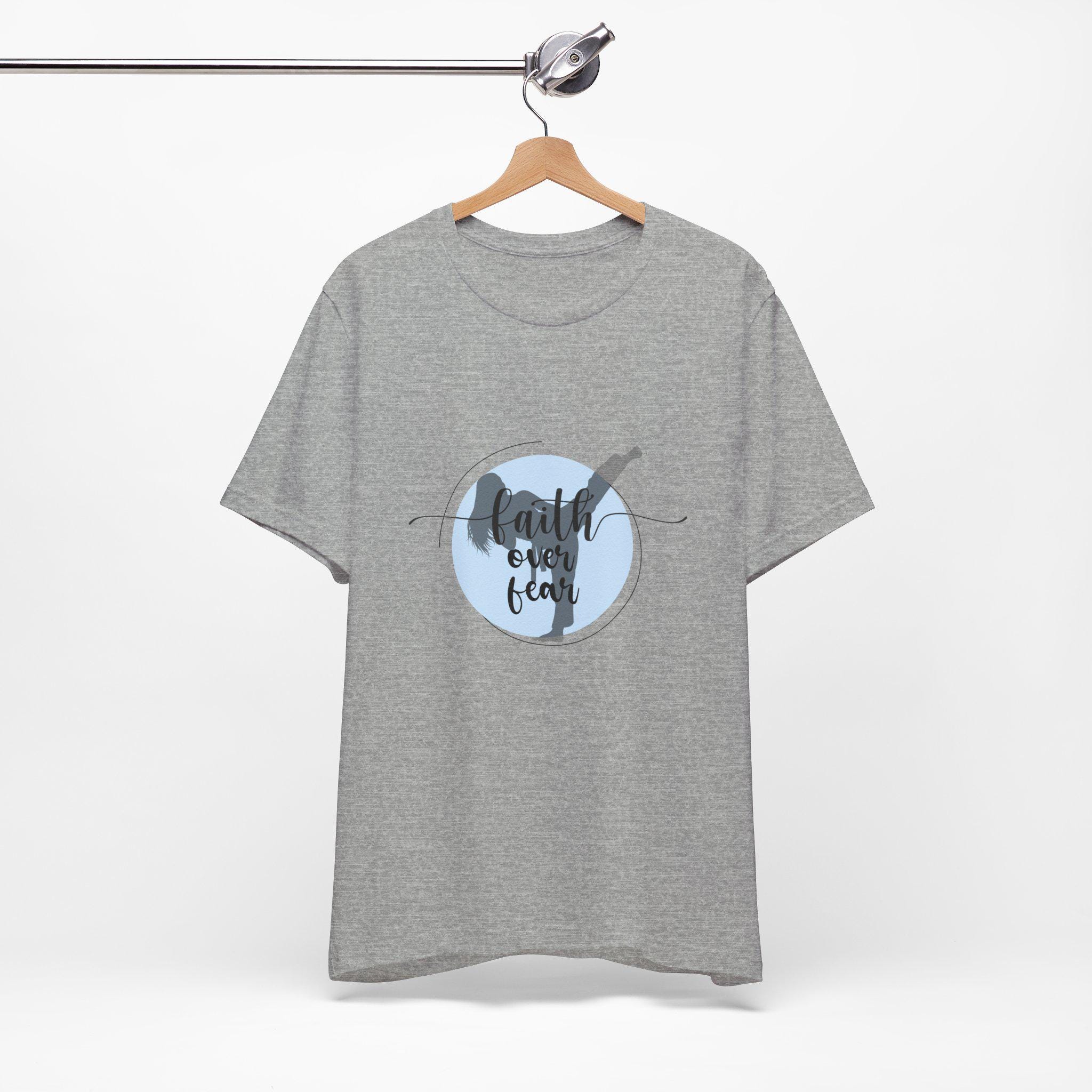 Soft, breathable tee with a calm, minimal design with a female warrior honoring your strength inside a washed blue circle. The lightweight cotton feels like a second skin—easy to layer under jackets or to wear on its own. The muted palette and hand-lettered script give it a gentle, reflective mood: something you reach for on slow mornings, quiet meetups, or when you want a subtle reminder to stay steady. The crew neckline and retail fit keep the silhouette clean and wearable while the durable construction means the message stays clear wash after wash.