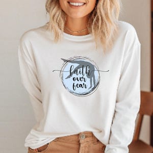 Lightweight long-sleeve tee with a quiet, confident message. The clean white fabric puts the bold text and simple cross emblem front-and-centerg. The retail fit and soft Airlume cotton make it easy to layer under a jacket, wear on its own during cool mornings, or bring along to weekend community events. It drapes naturally and keeps shape thanks to side seams and shoulder taping, so it looks put-together without feeling stiff. Feels lived-in from the first wear and pairs naturally with jeans or your go-to hoodie for weekend service, volunteer days, or quiet walks when you want a gentle reminder of courage.