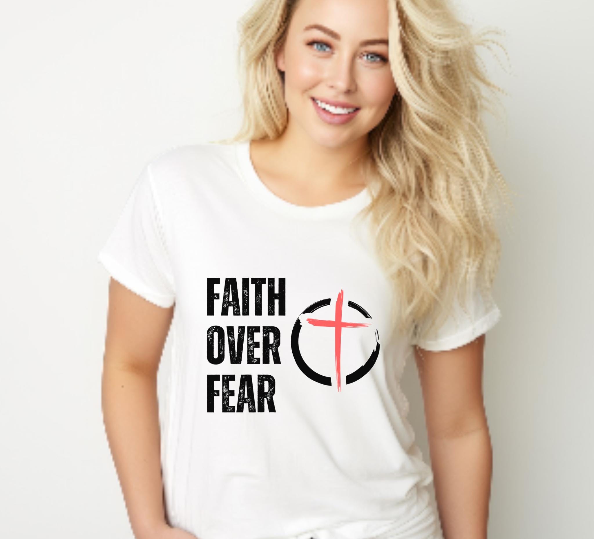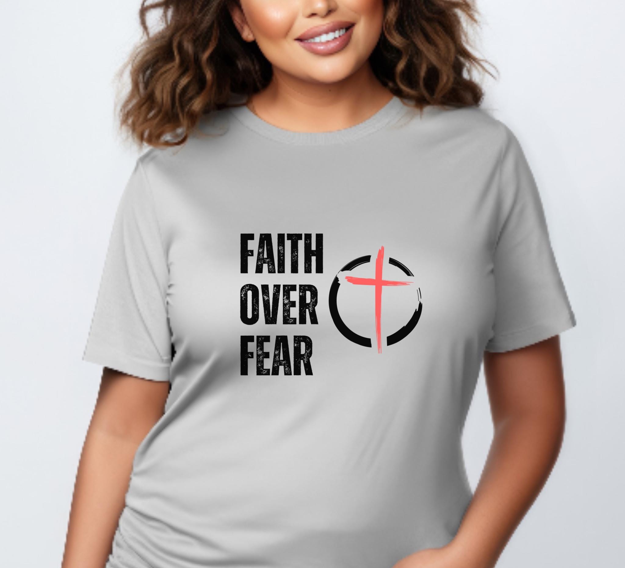 Lightweight, breathable jersey tee with a bold, faith-forward graphic. The front shows distressed block lettering alongside a circular cross mark in soft red and charcoal, giving the design a worn, authentic look. The crew neckline and retail fit make it easy to layer under jackets or wear solo for church, service projects, or everyday wear. This shirt is made from 100% Airlume combed and ring-spun cotton (with blended options in heathers) for a soft hand and lasting shape. Comfort and durability endure with this design, while sleeve and neck prints use high-quality DTF/DTG techniques for crisp, vibrant detail.