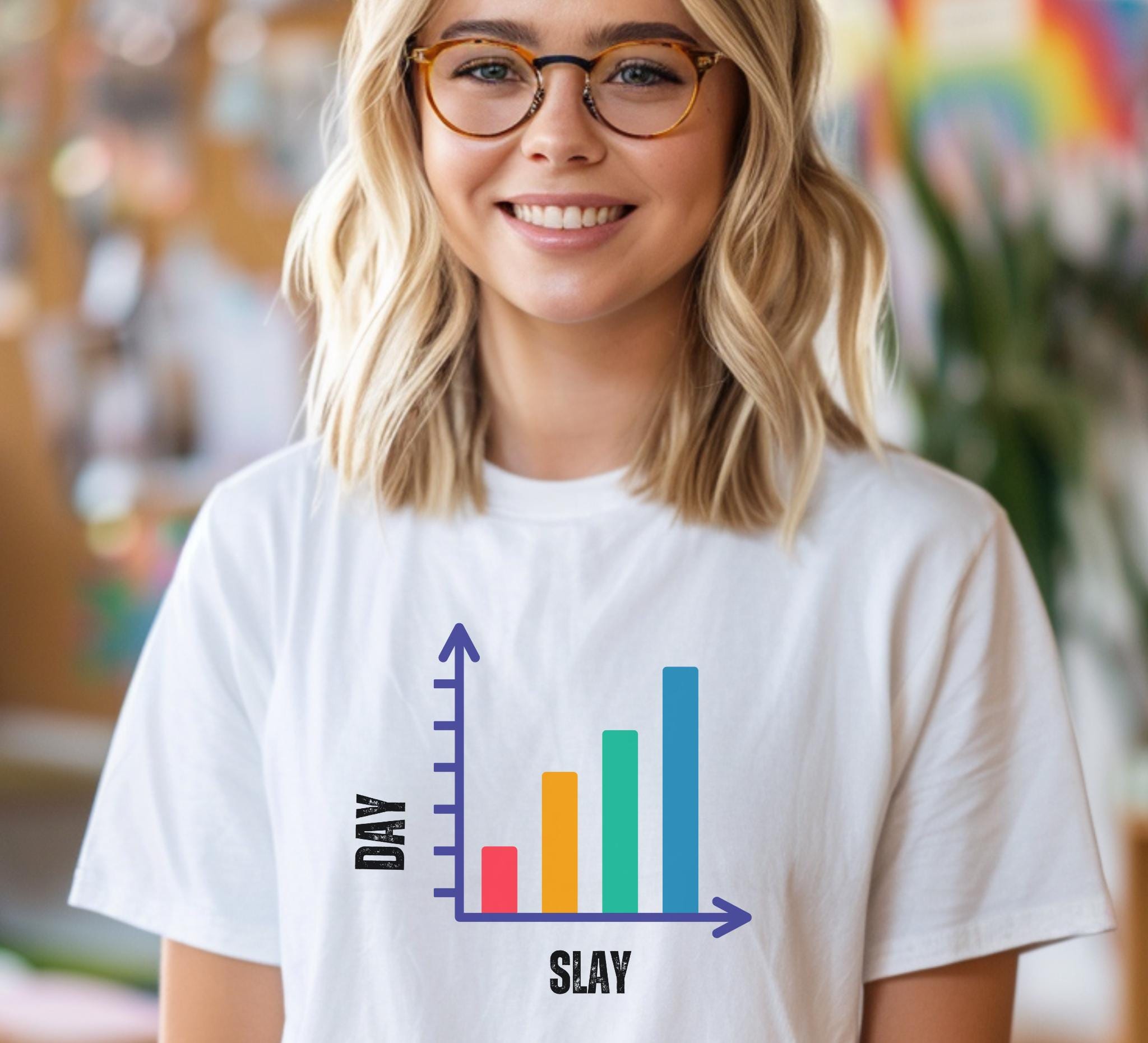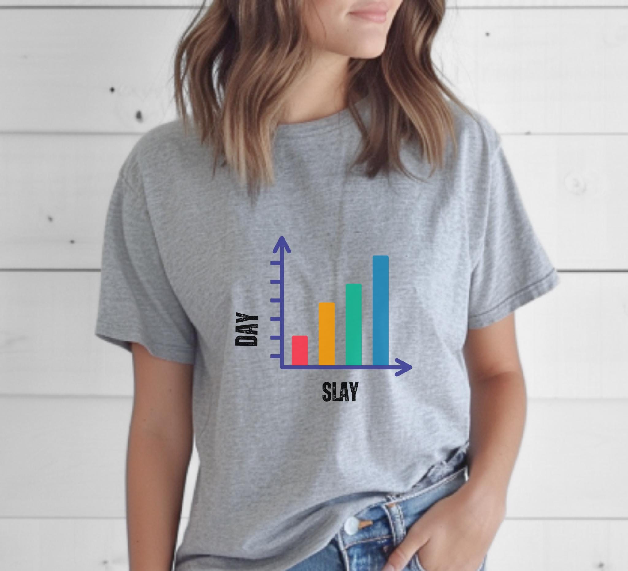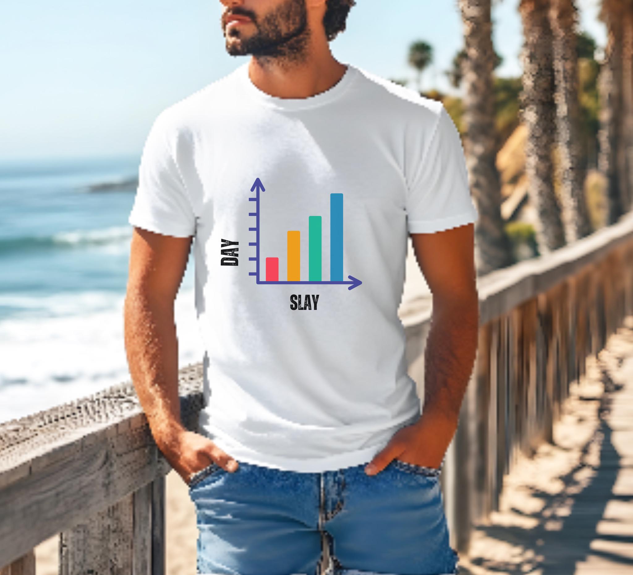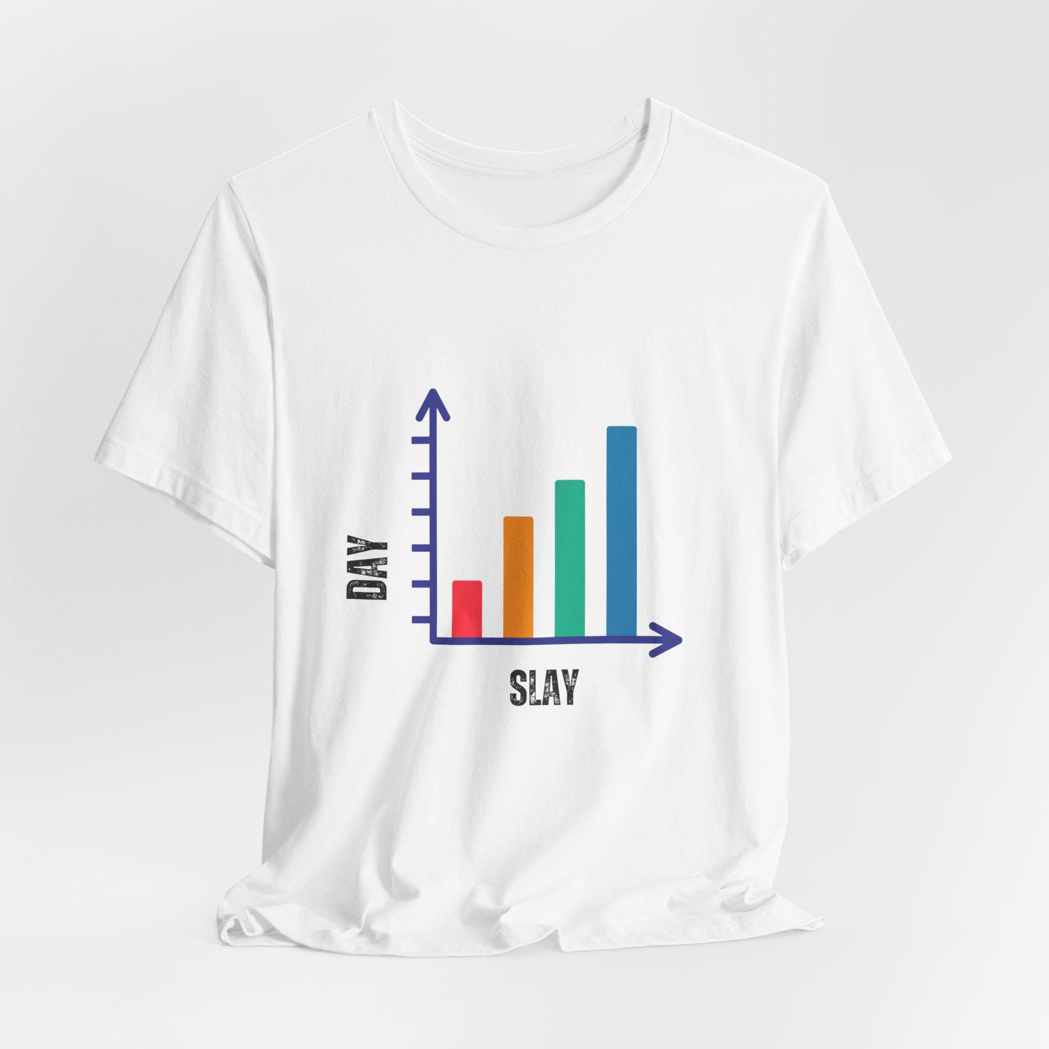 Lightweight, breathable, and built for movement—this crew-neck tee brings playful confidence to everyday wear. A clean bar-chart graphic climbs across the chest in bold, cheerful colors with confident declaration that your day’s progress only goes up. The soft Airlume combed and ring-spun cotton feels gentle against skin, while side seams and shoulder tape keep the silhouette tidy through washes. Wear it layered under a jacket or solo with jeans for coffee runs—this tee slips into active, creative, and busy routines without fuss.