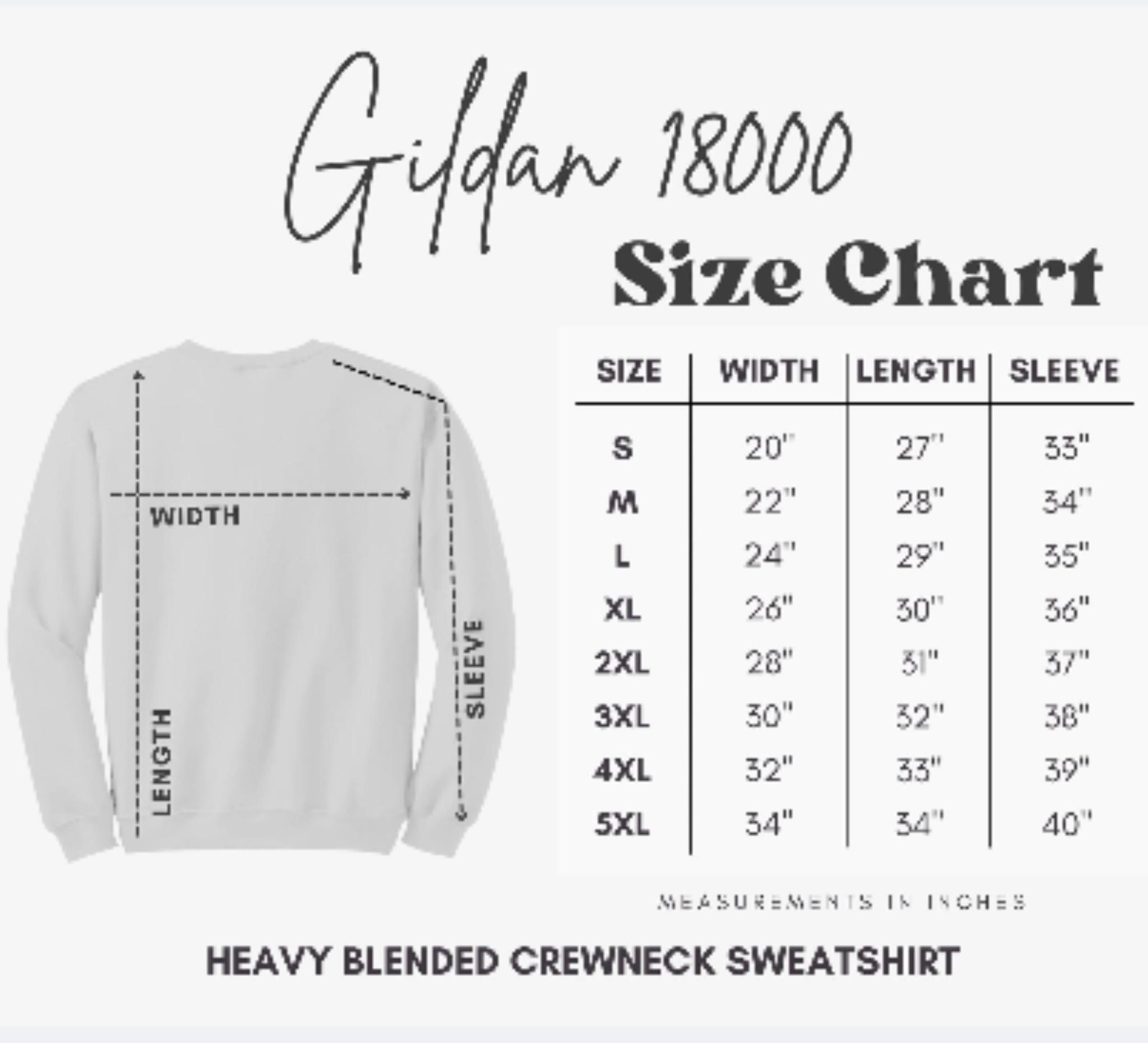 Sweatshirts - Shirts are made in Unisex Sizing (see size chart). - Shirt positioning and rolled sleeves in pictures are for styling purposes only. - Props used in photos are NOT included with purchase. - Please note, due to variation between computer monitors, actual colors may vary slightly from how they appear on your screen. - We are working with multiple shirt brands, please be aware that the display picture does not show the brand it will come from. We mainly focus on sizing, material, and color match.
